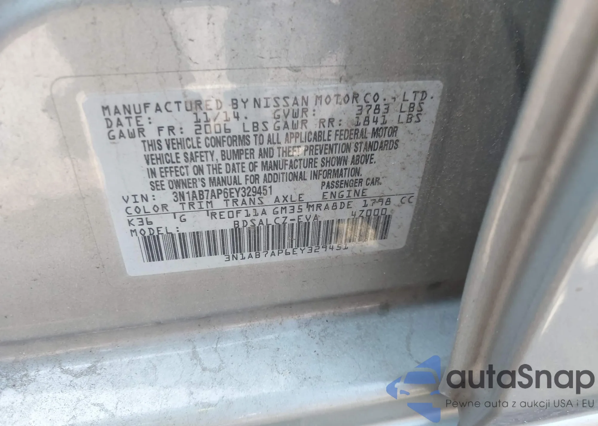 LOT: 42964748 VIN: 3N1AB7AP6EY329451