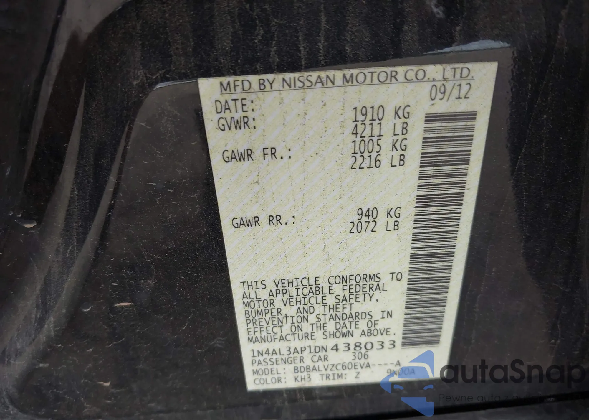 • VIN 1N4AL3AP1DN438033