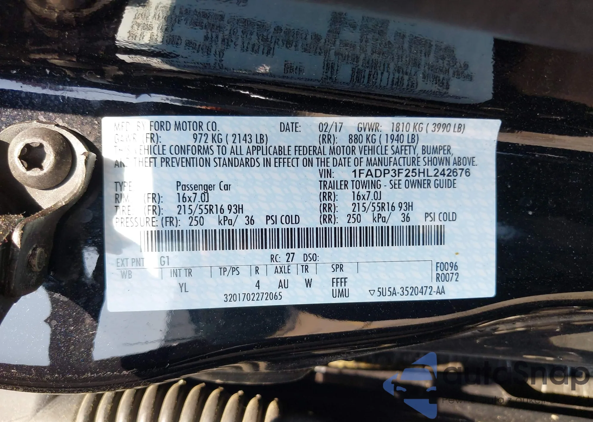 • VIN 1FADP3F25HL242676