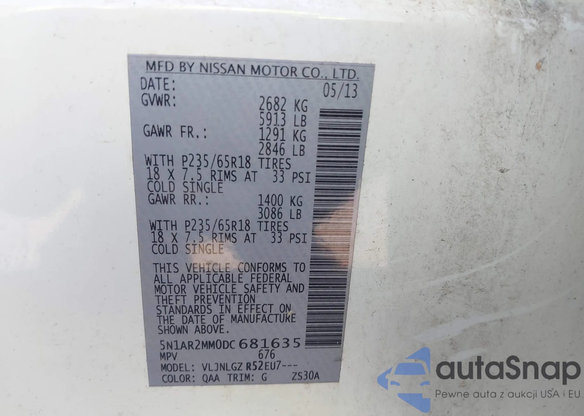 LOT: 43016327 VIN: 5N1AR2MM0DC681635