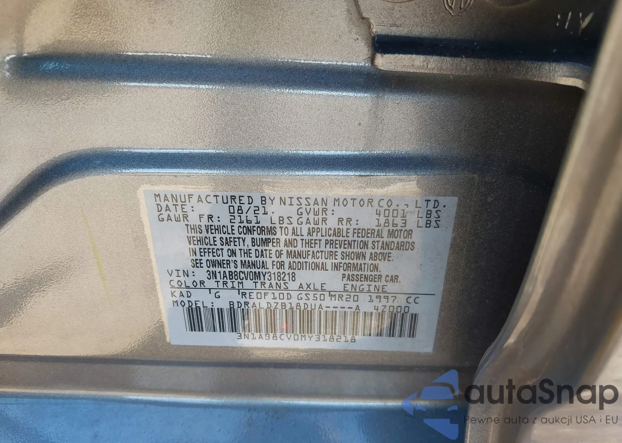 • VIN 3N1AB8CV0MY318218