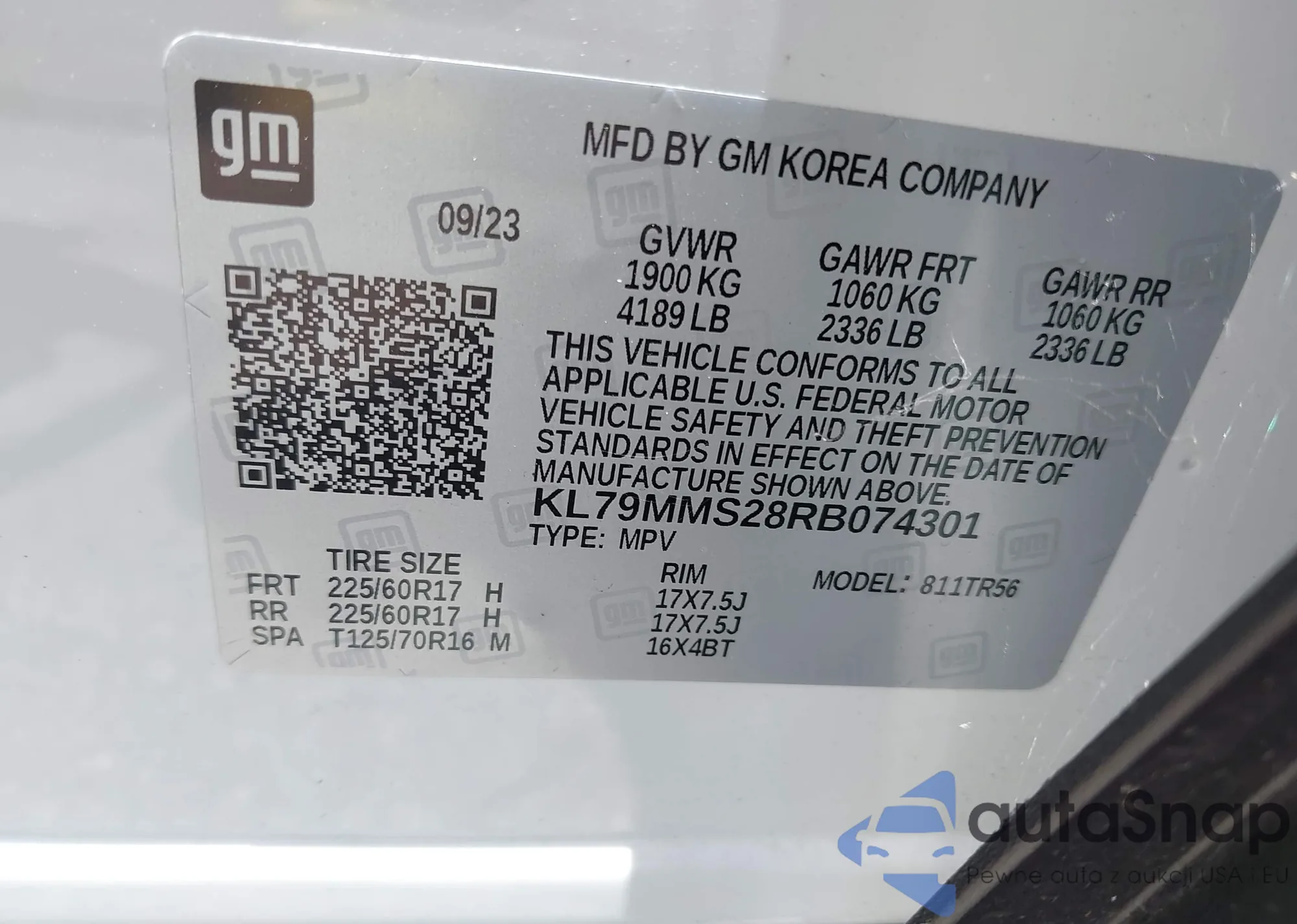 LOT: 42728071 VIN: 1GYKNDRS8PZ118075