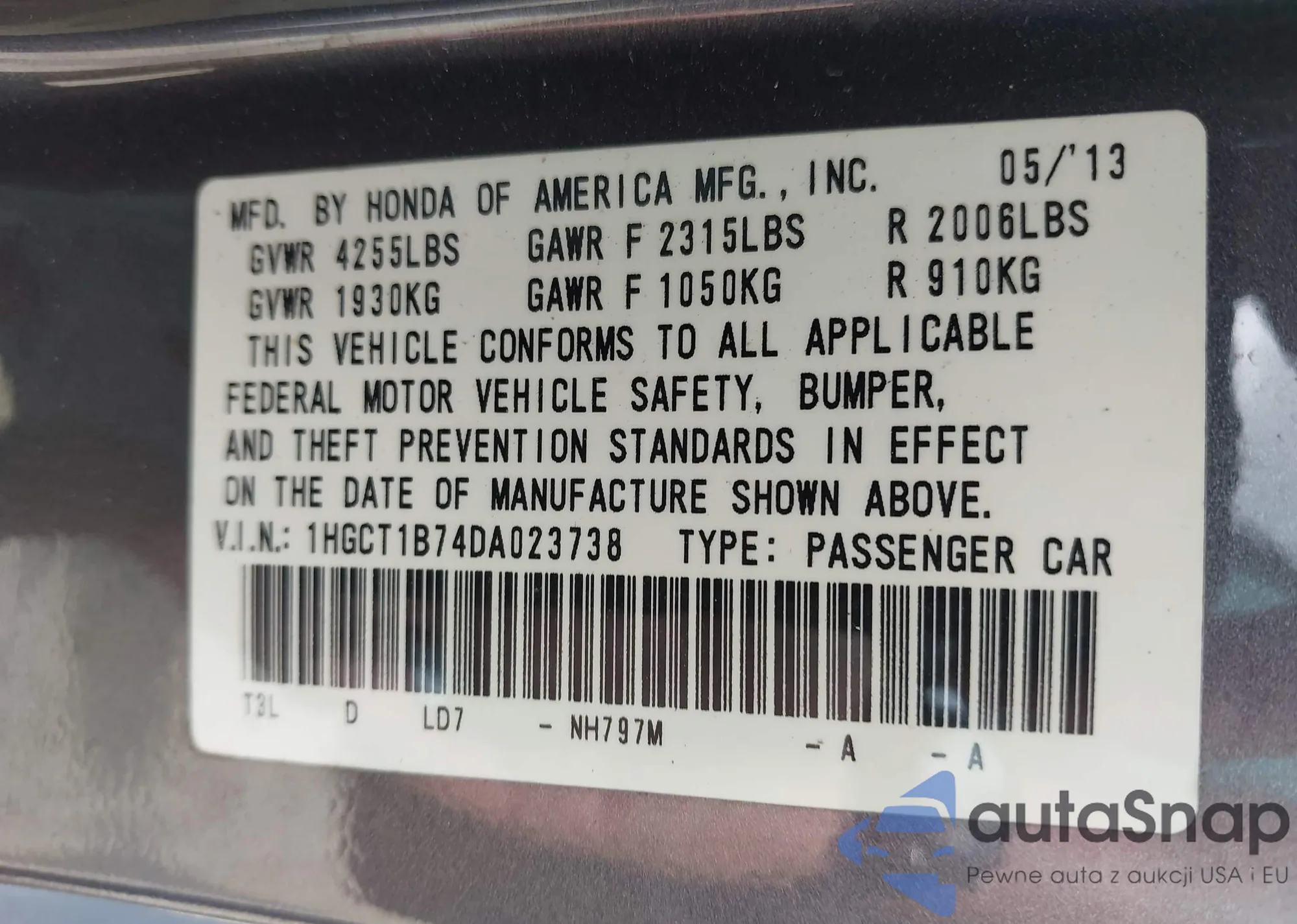 • VIN 1HGCR3F8XFA020424