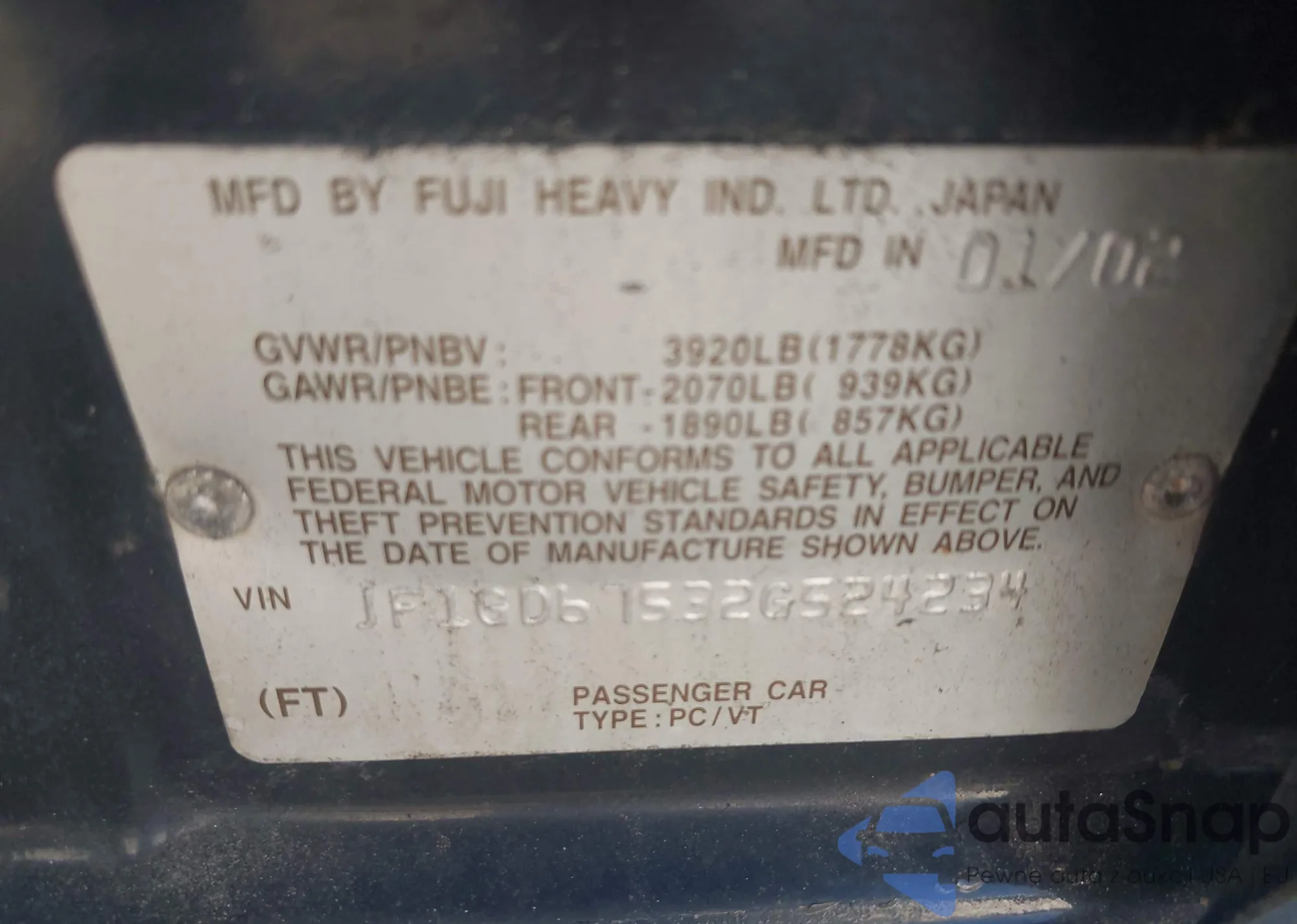 • VIN 1C4PJLAB1FW535731