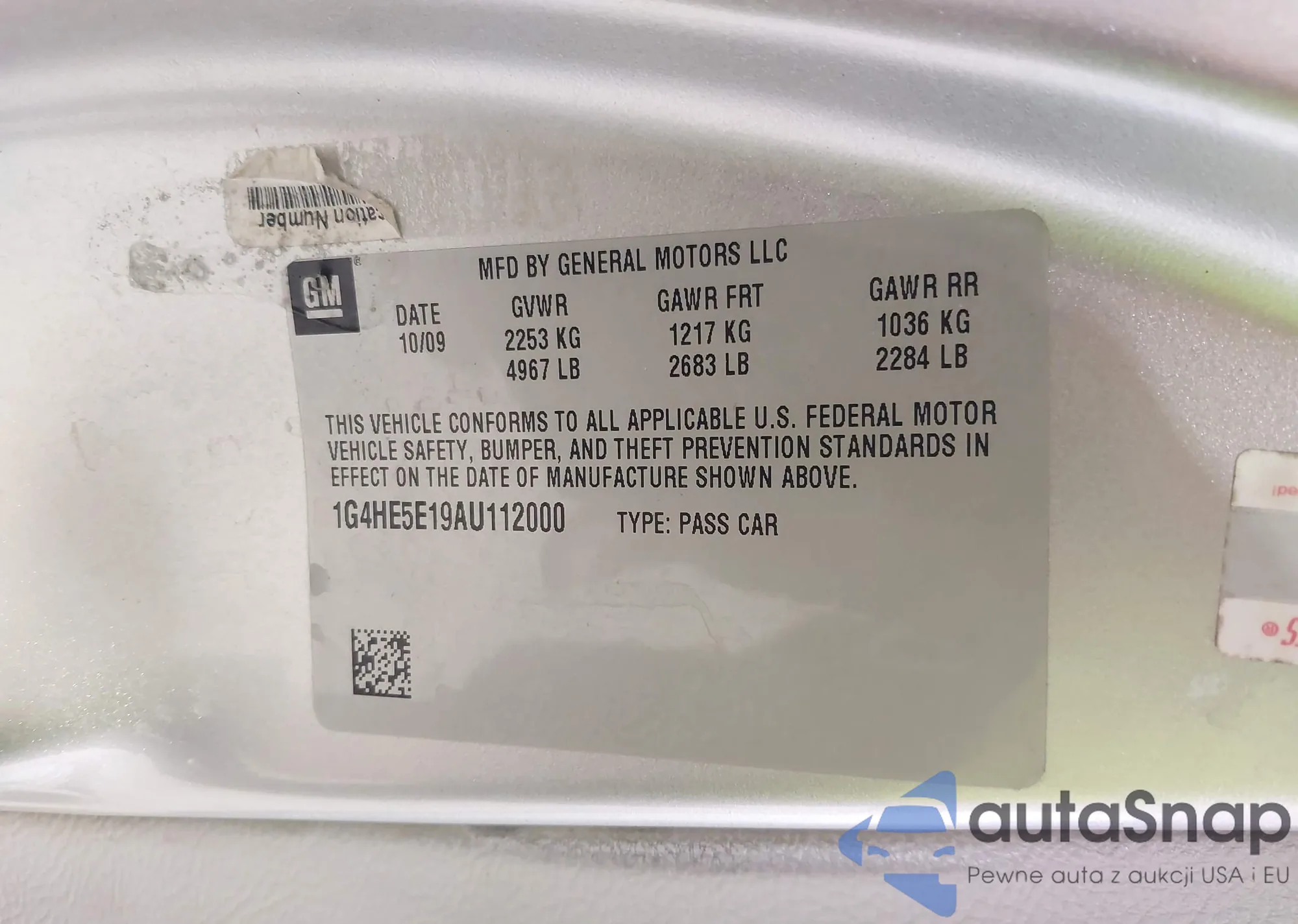 • VIN 1G4HE5E19AU112000