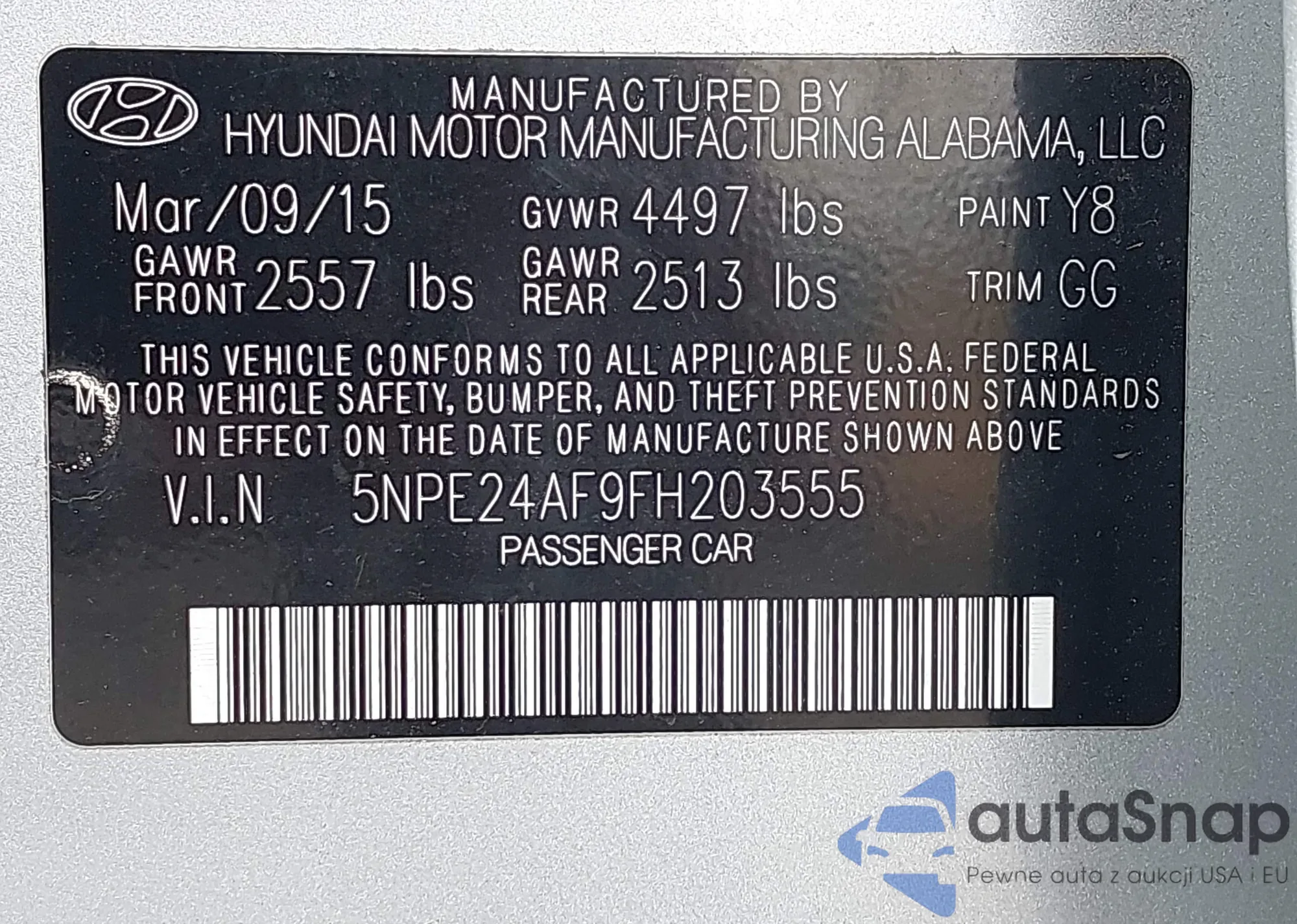 • VIN 5NPE24AF9FH203555
