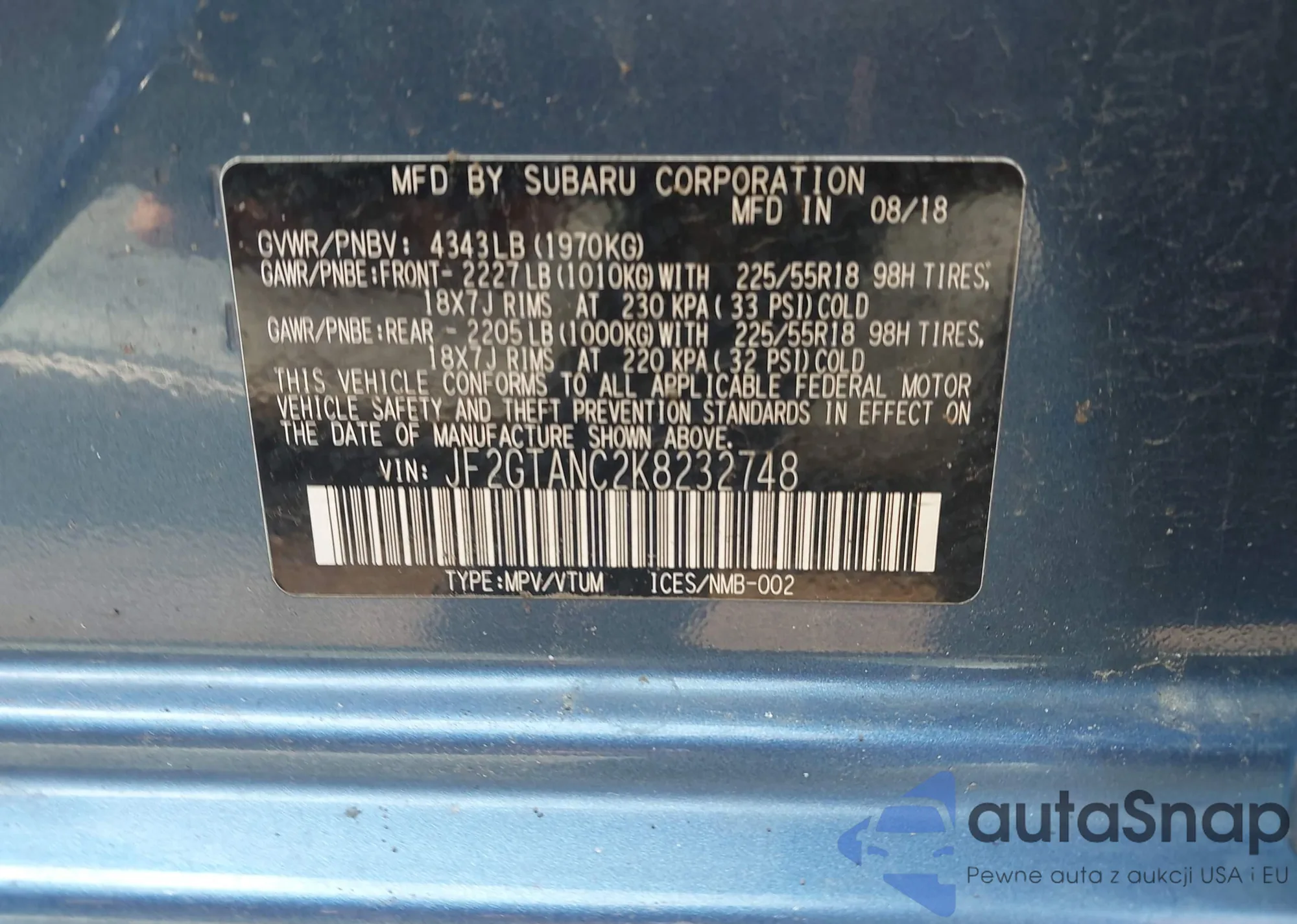 • VIN JF2GTANC2K8232748