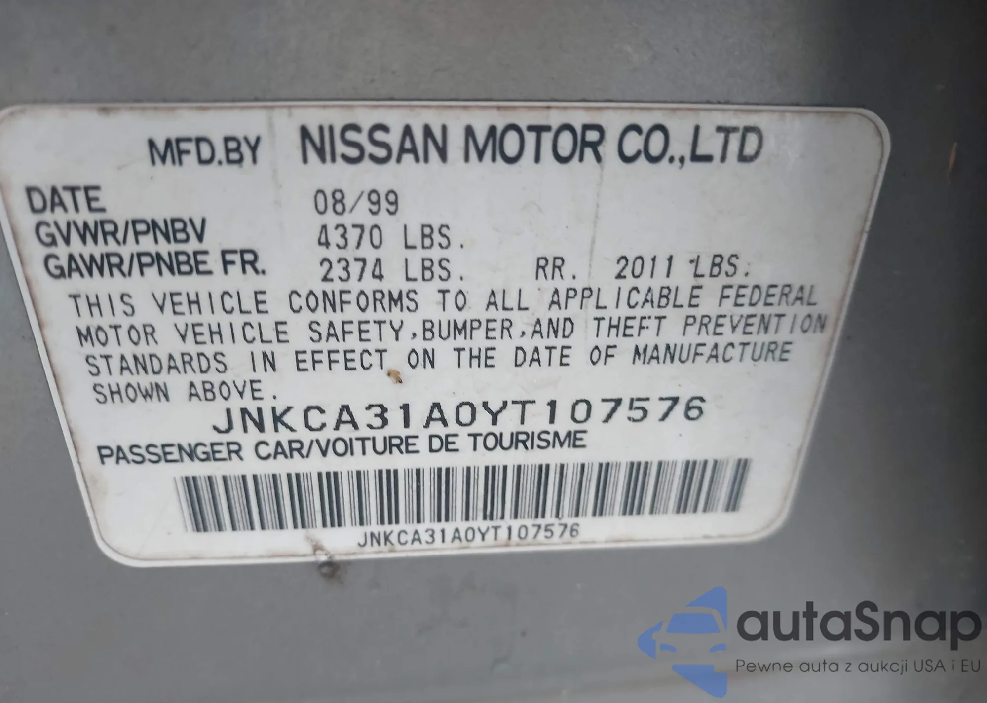 LOT: 42880810 VIN: JNKCA31A0YT107576