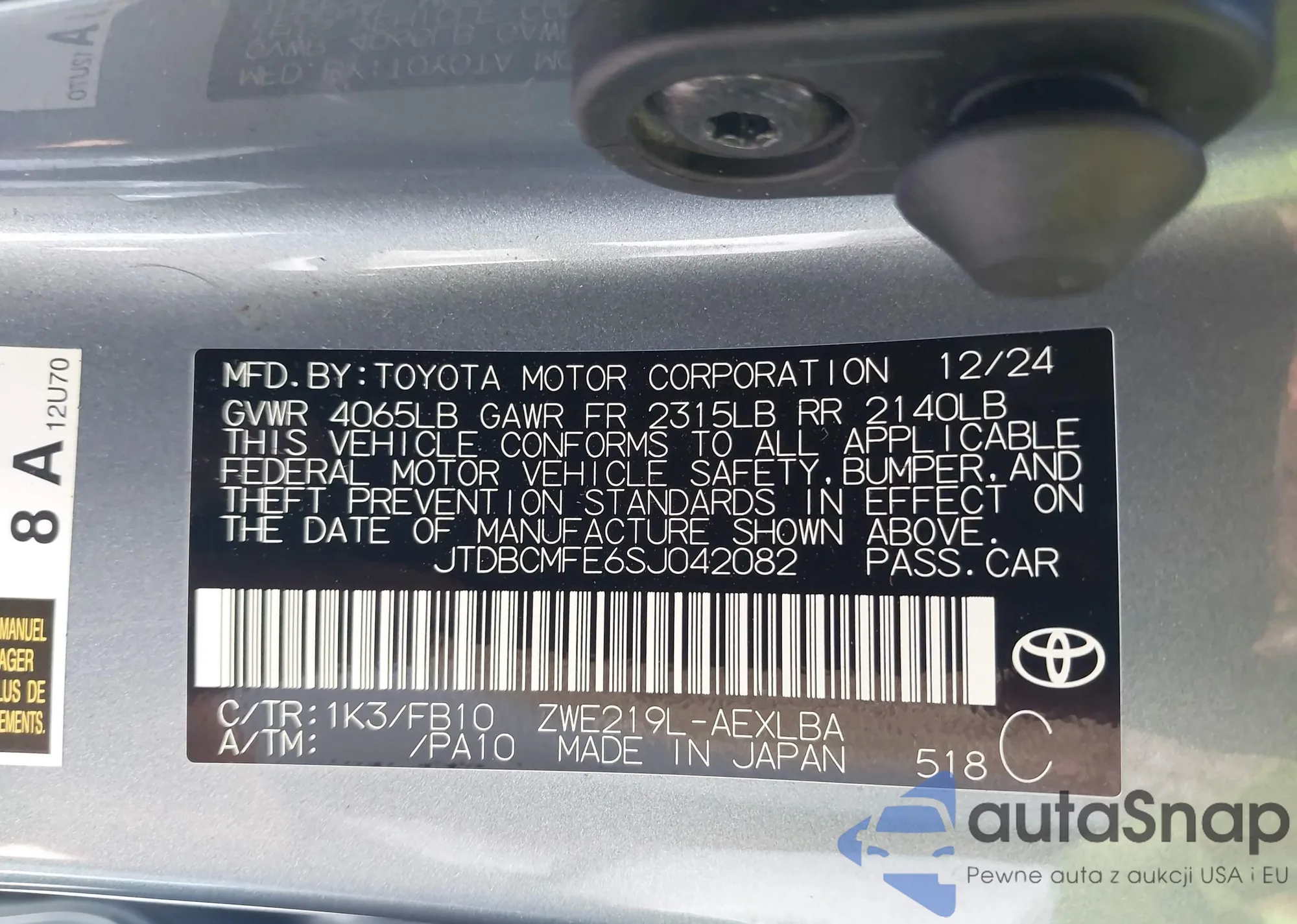 LOT: 42830315 VIN: 5NPEB4AC1CH452174