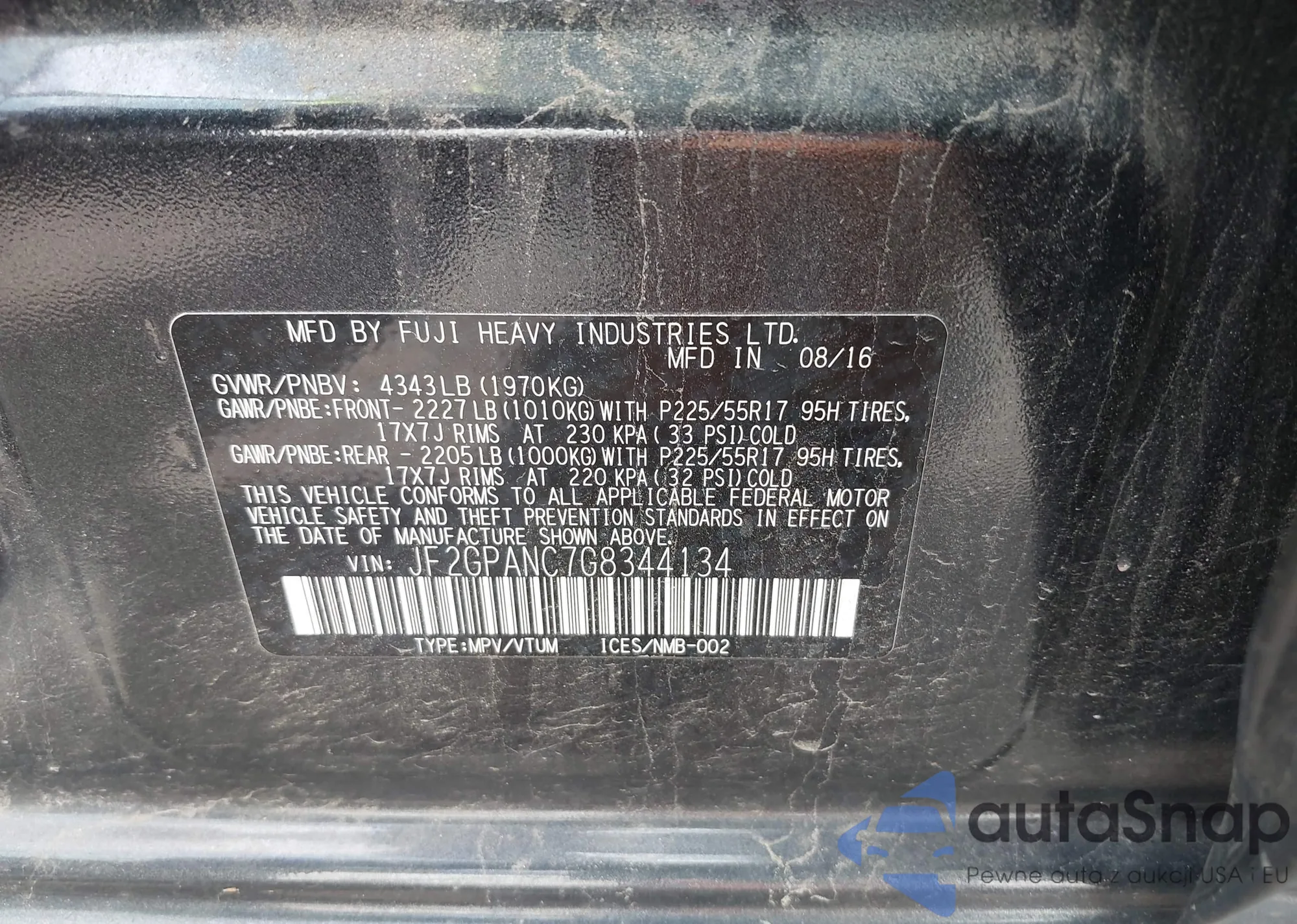 LOT: 42815725 VIN: JTHBJ46G972067422