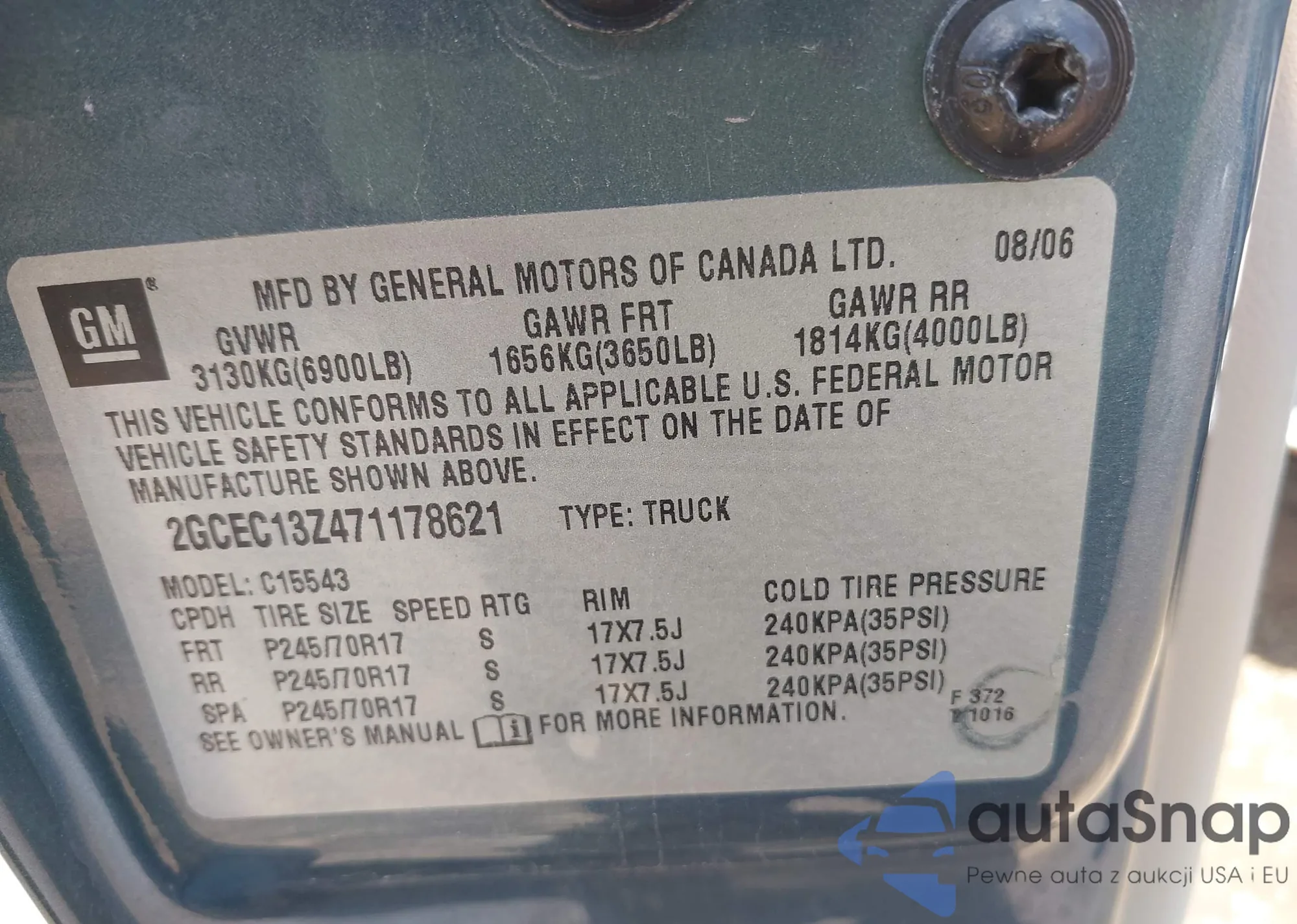 • VIN 2GCEC13Z471178621
