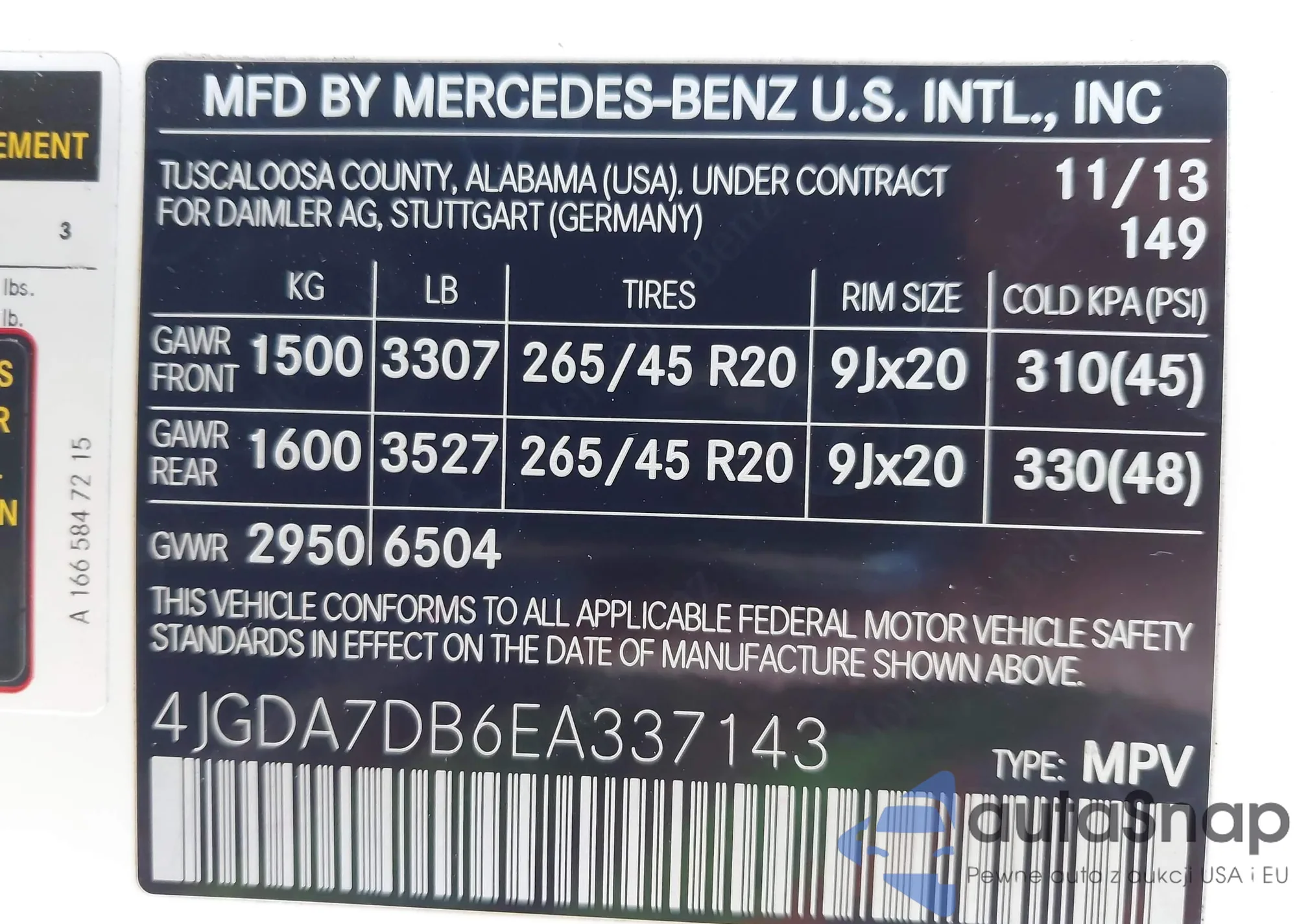 • VIN 4JGDA7DB6EA337143