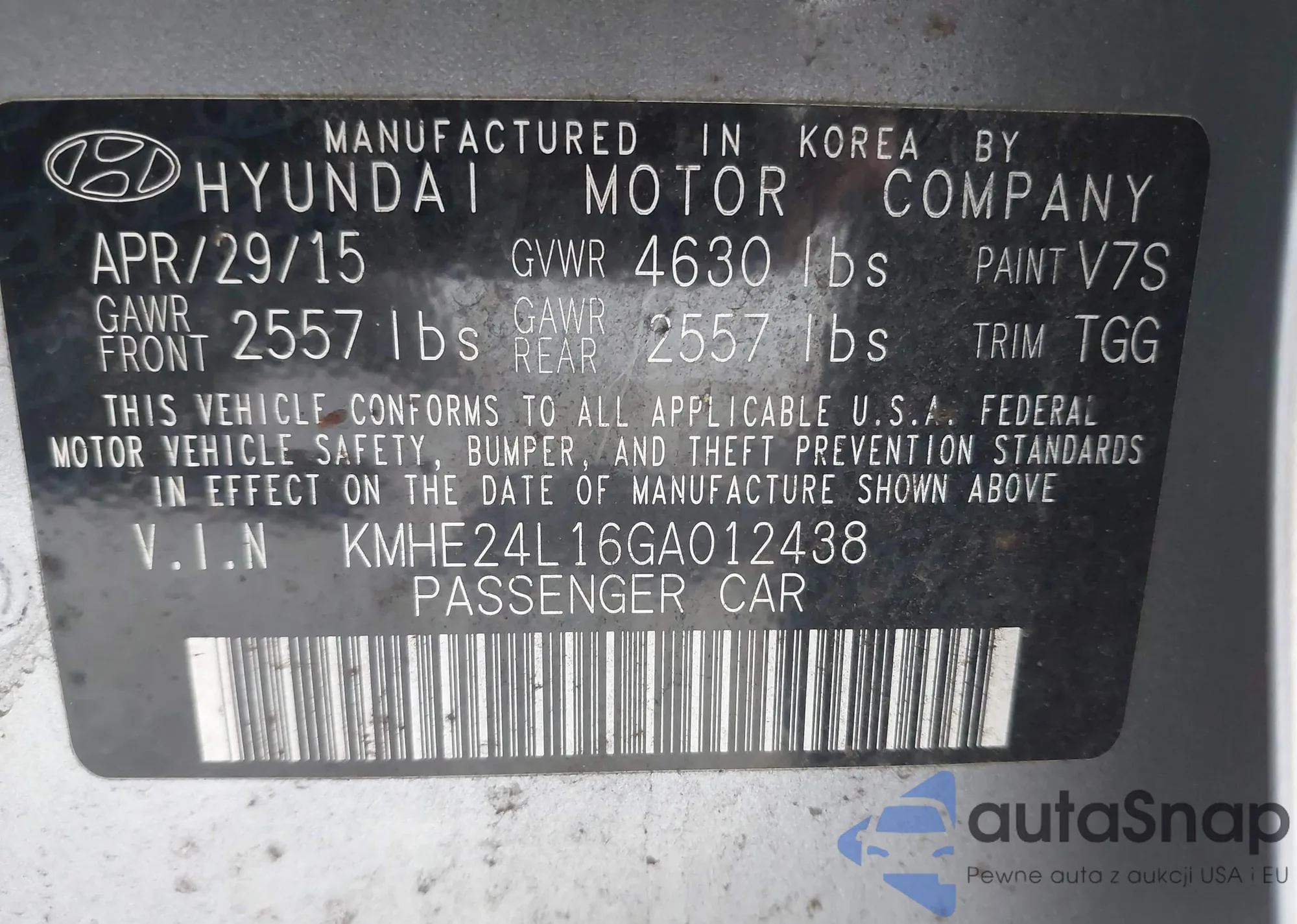 • VIN KMHE24L16GA012438