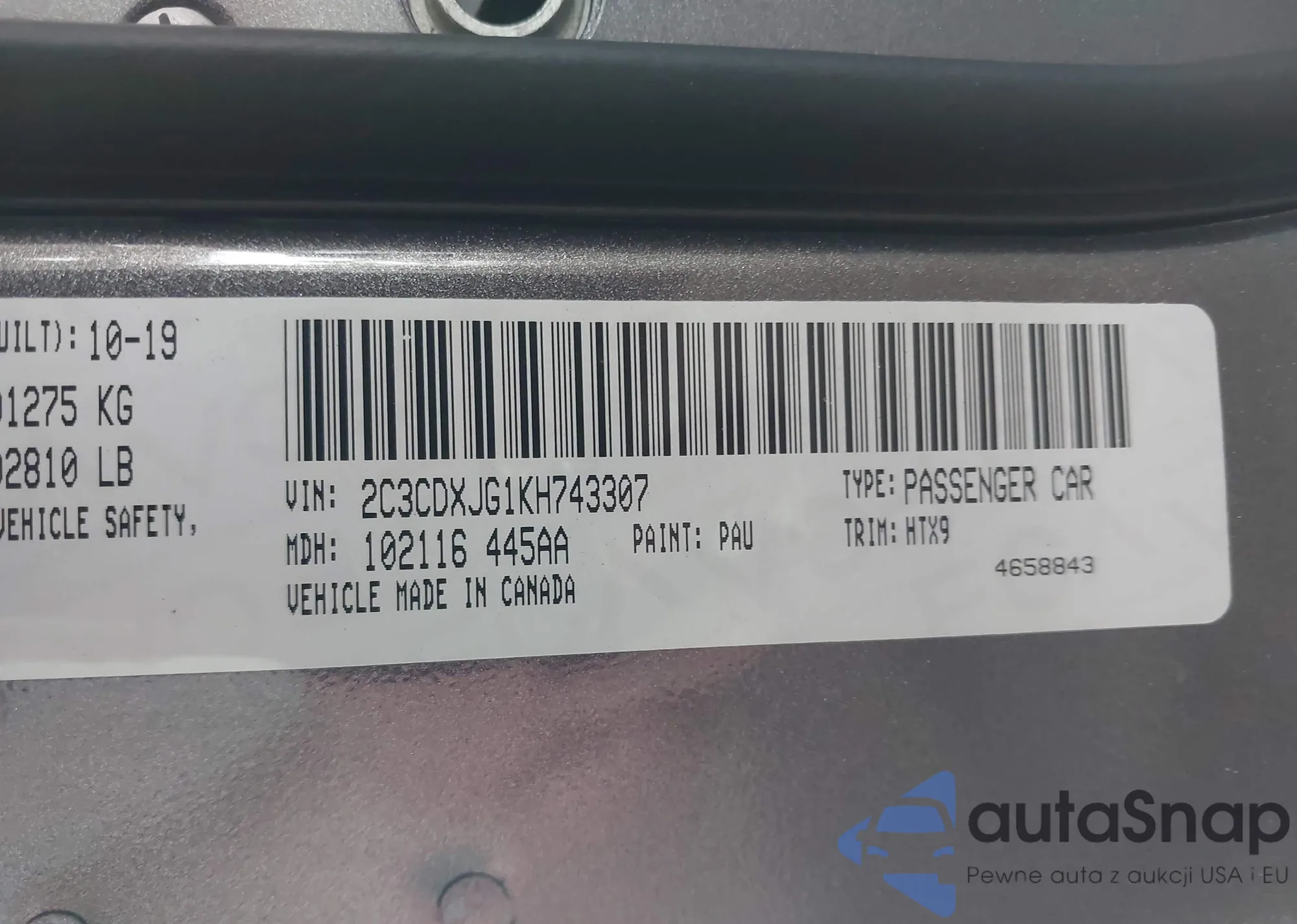 • VIN 2C3CDXJG1KH743307