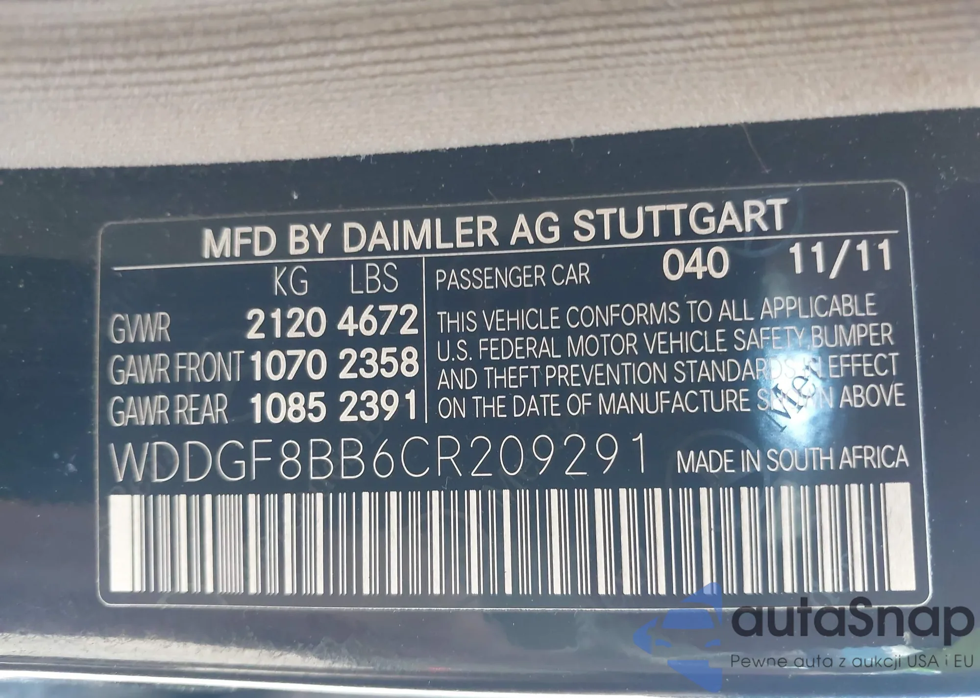 • VIN WDDGF8BB6CR209291