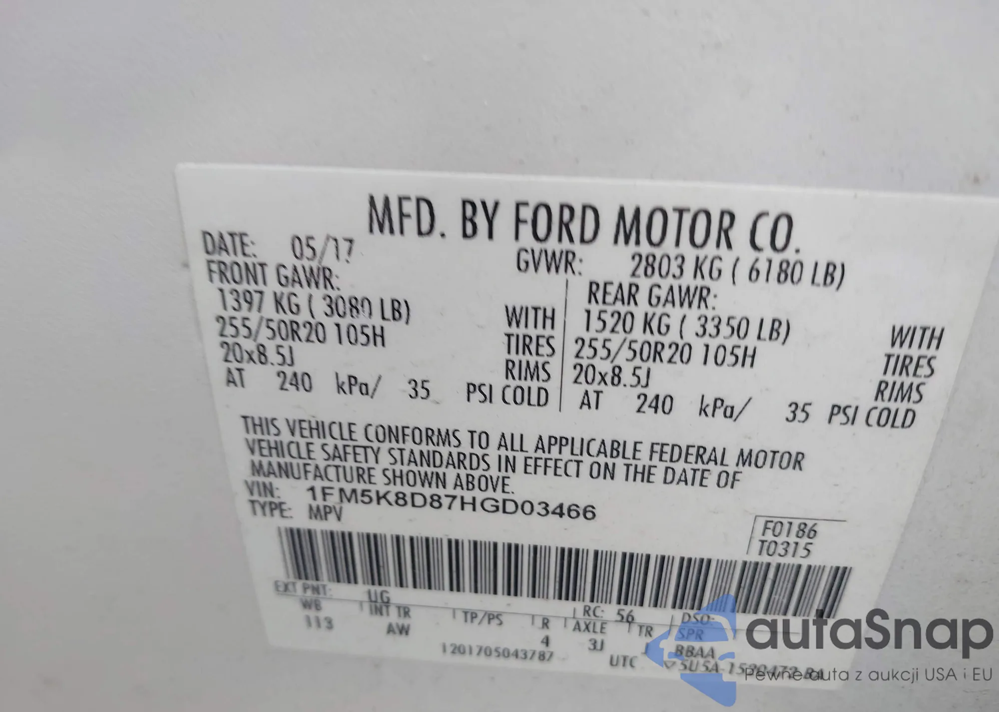 • VIN 1FM5K8D87HGD03466