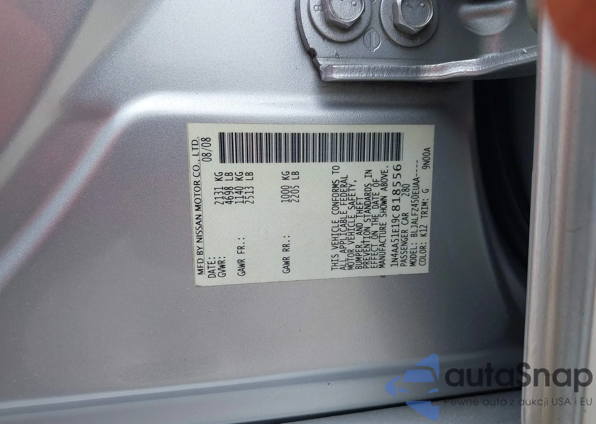 LOT: 42437831 VIN: 1N4AA51E19C818556