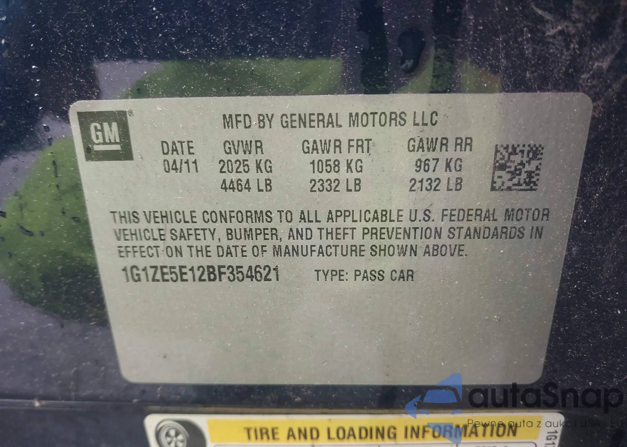 • VIN 1G1ZE5E12BF354621