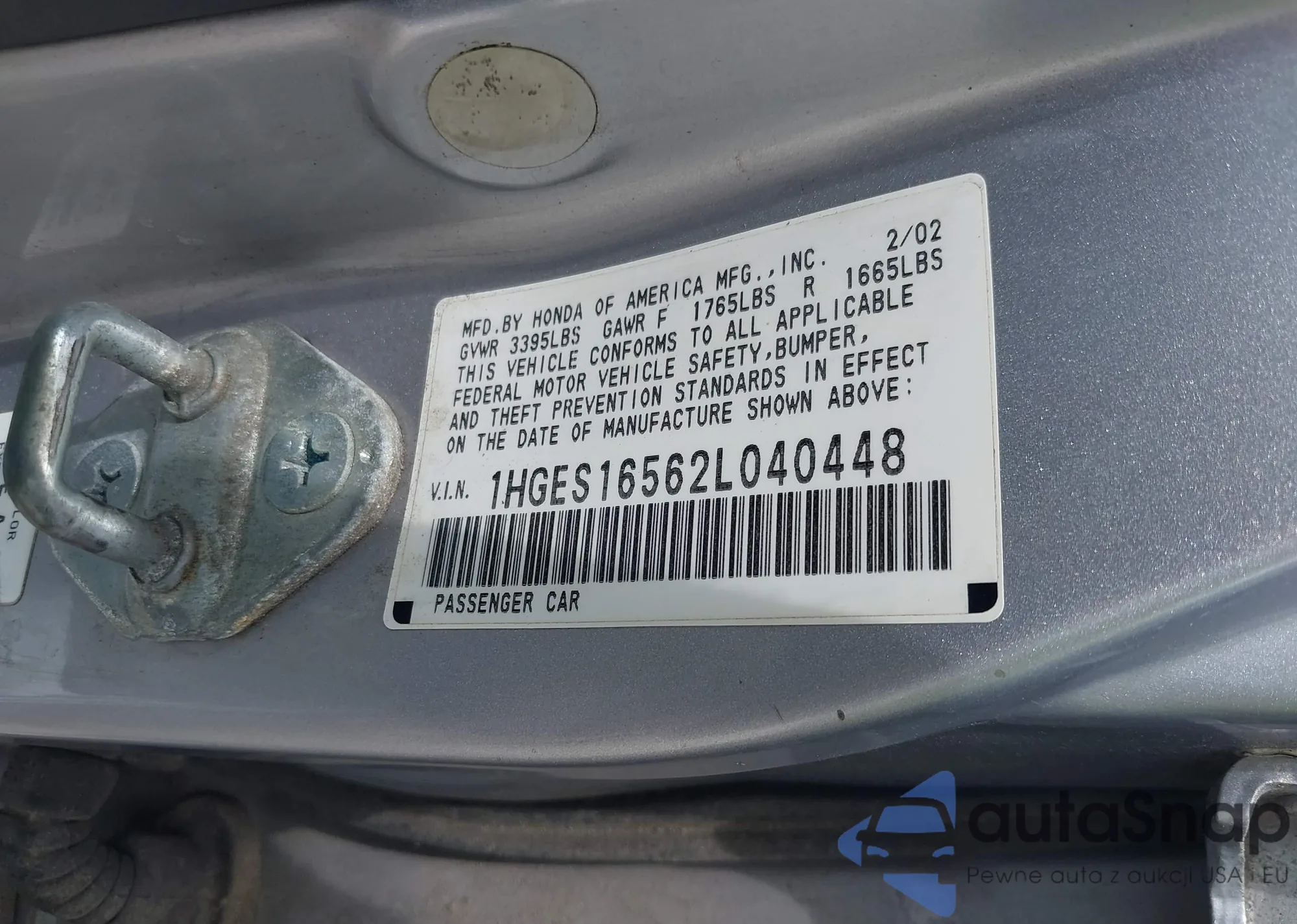 LOT: 43081858 VIN: 1HGES16562L040448