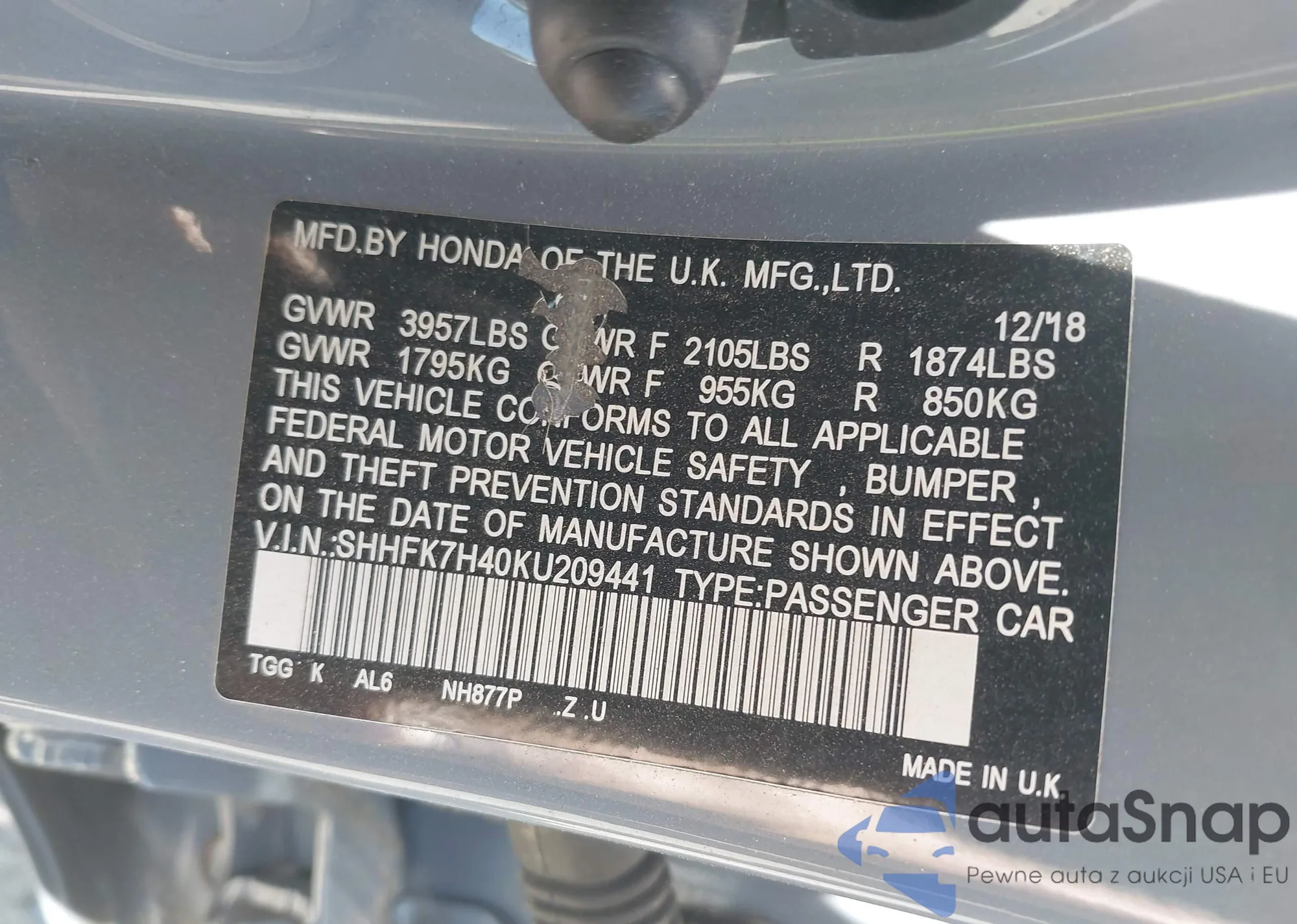 • VIN SHHFK7H40KU209441