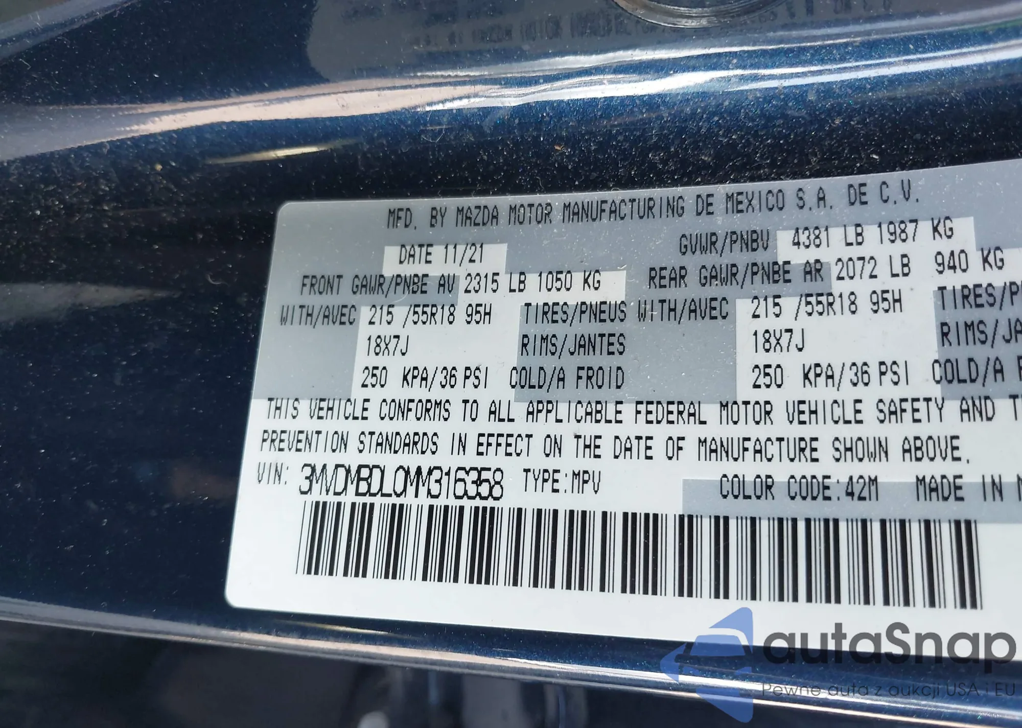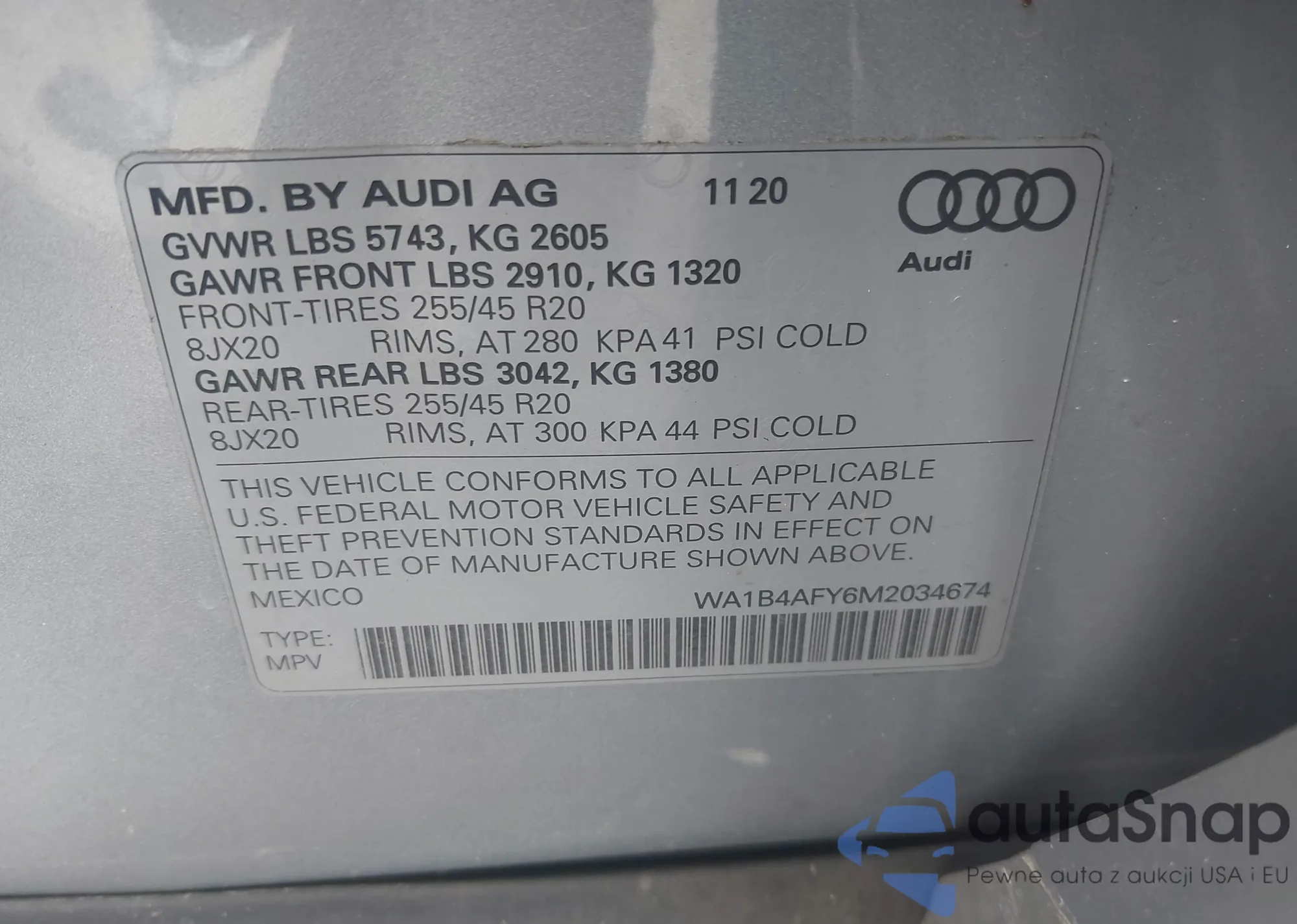 LOT: 42695375 VIN: WA1B4AFY6M2034674