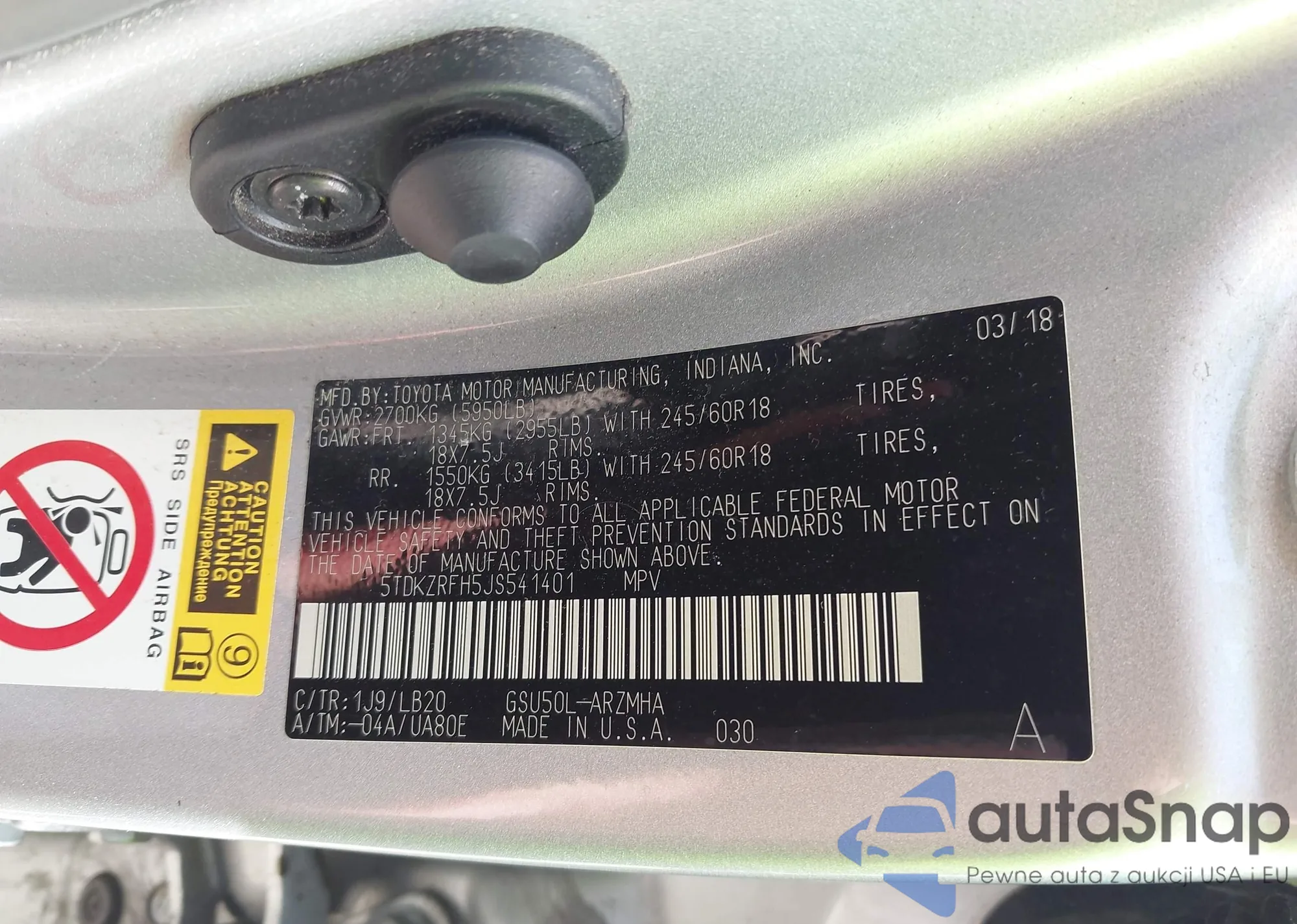 • VIN 5TDKZRFH5JS541401