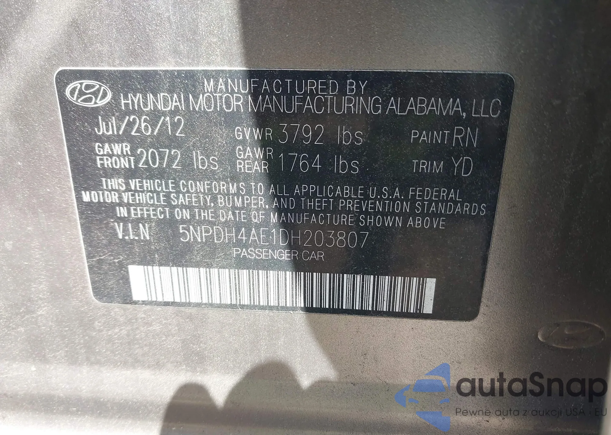 • VIN 5NPDH4AE1DH203807