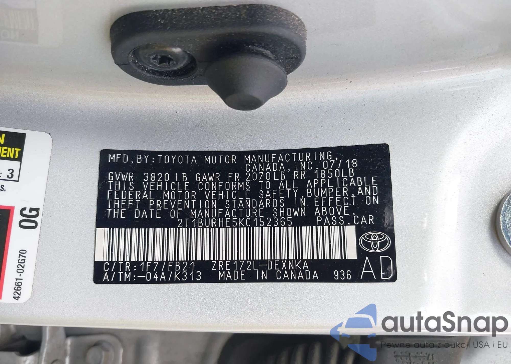 LOT: 43006356 VIN: 2T1BURHE5KC152365