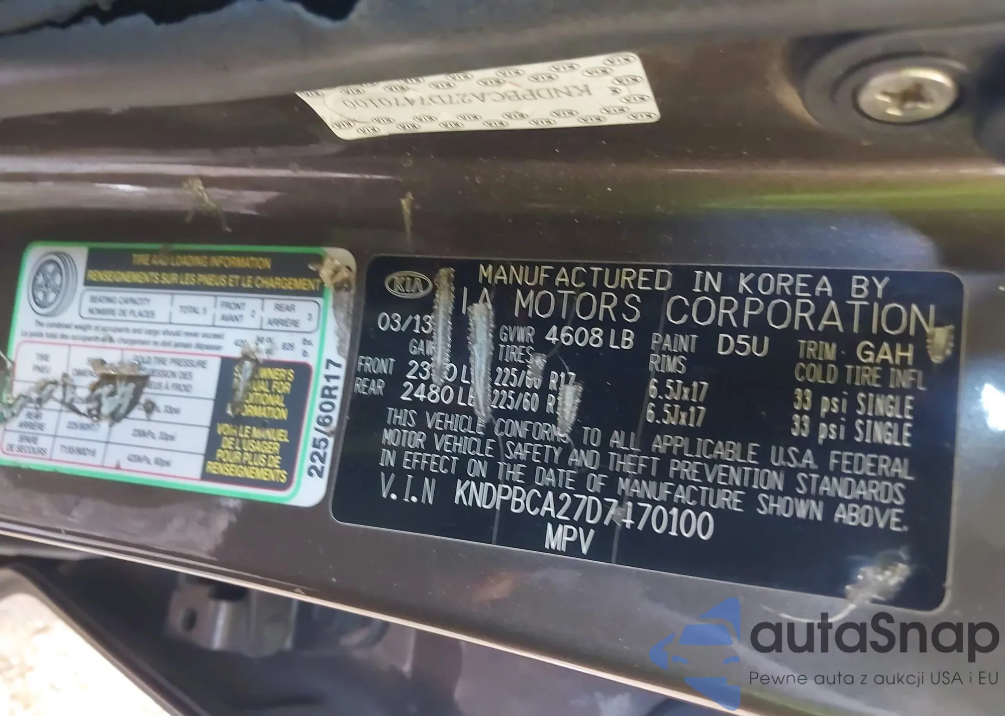 • VIN KNDPBCA27D7470100