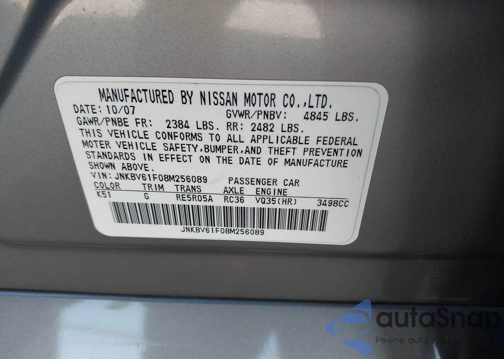 LOT: 42769531 VIN: JNKBV61F08M256089