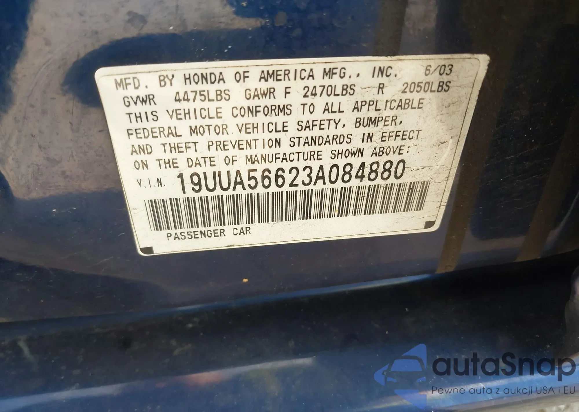 LOT: 42852958 VIN: 19UUA56623A084880