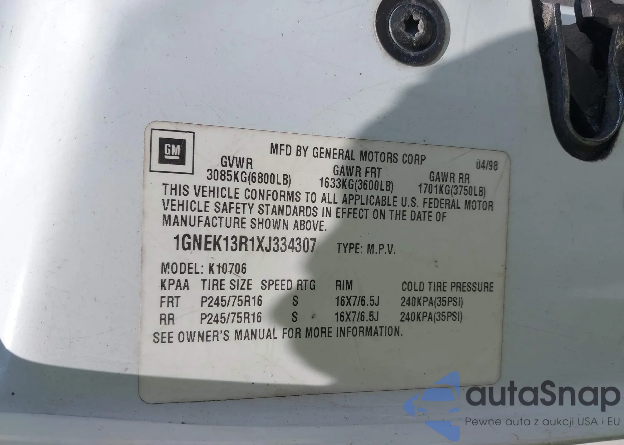 LOT: 43000421 VIN: 1G1PC5SG1G7180354