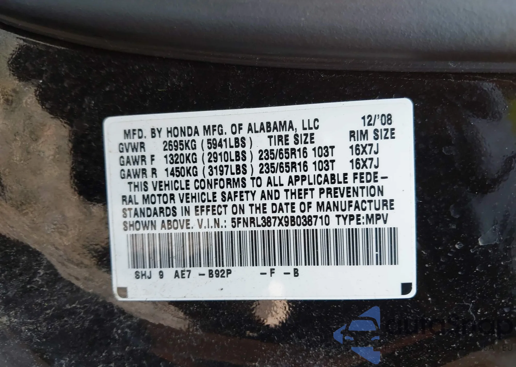 • VIN 2HKRW2H56MH657864