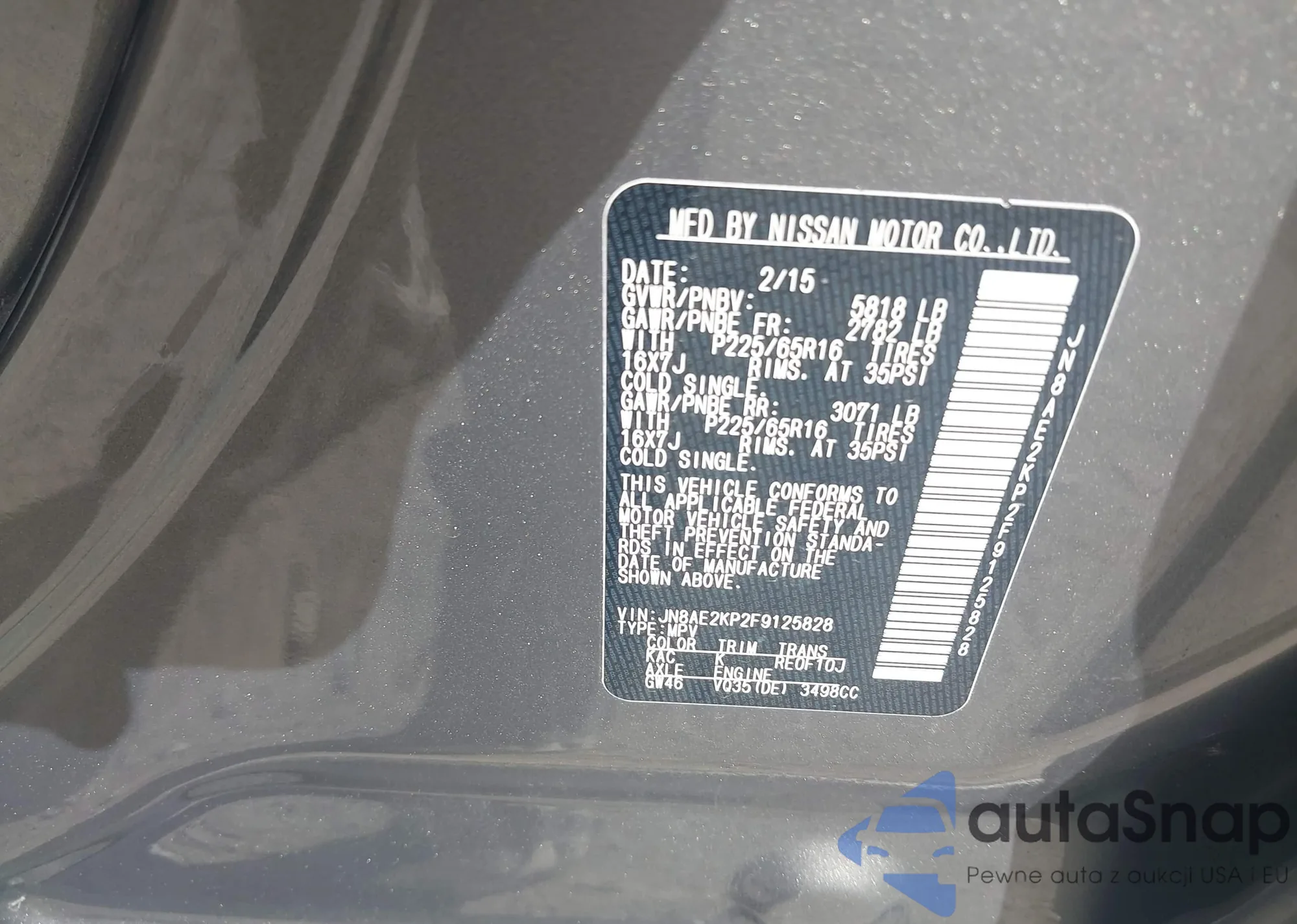 LOT: 42764418 VIN: JN8AE2KP2F9125828