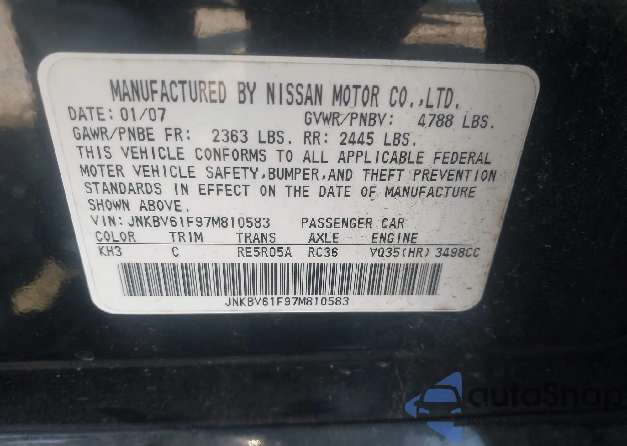 • VIN JNKBV61F97M810583