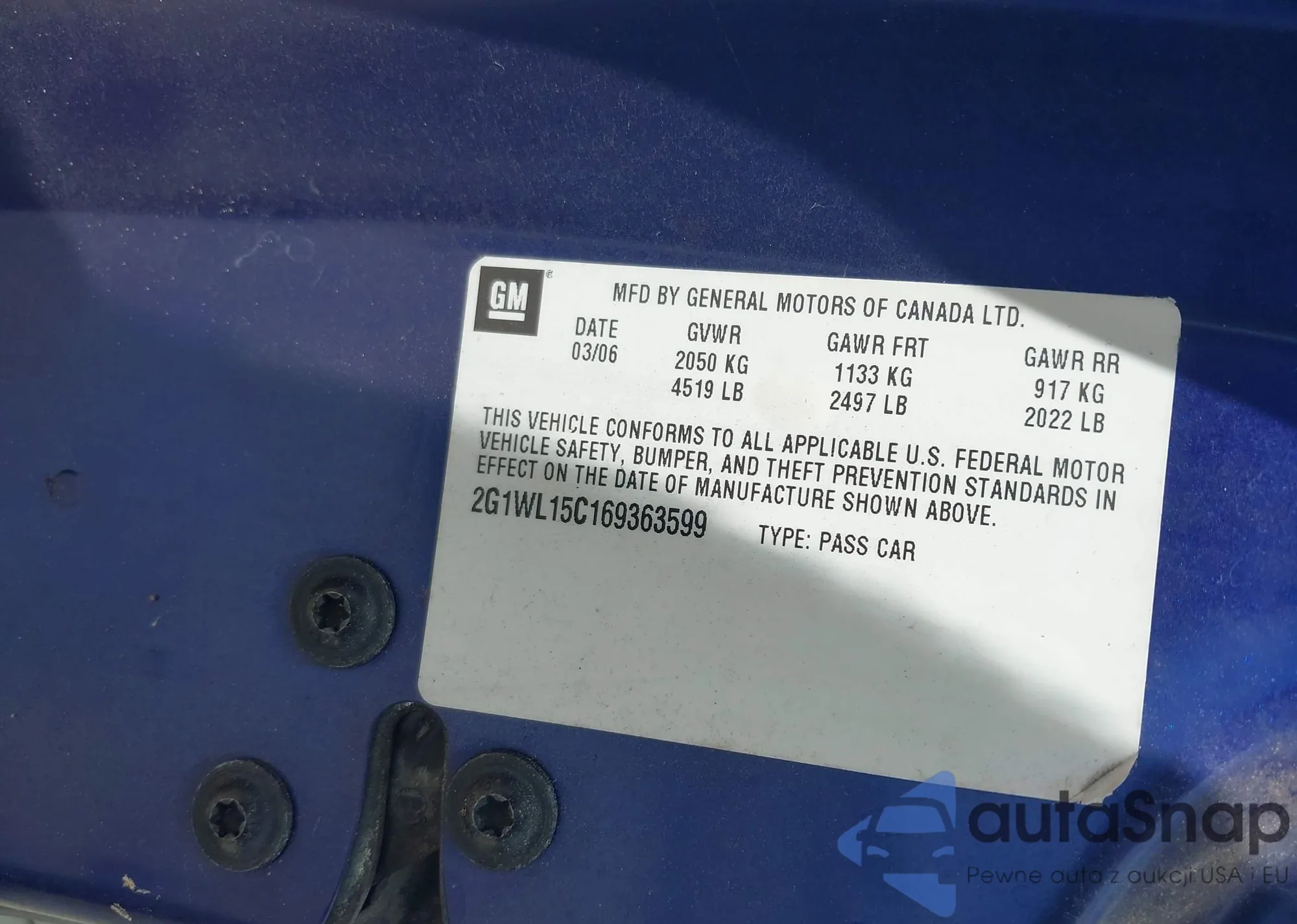 • VIN 2G1WL15C169363599