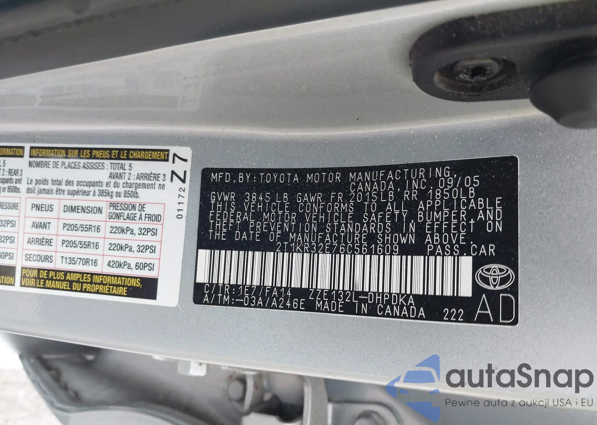 • VIN 2T1KR32E76C561609