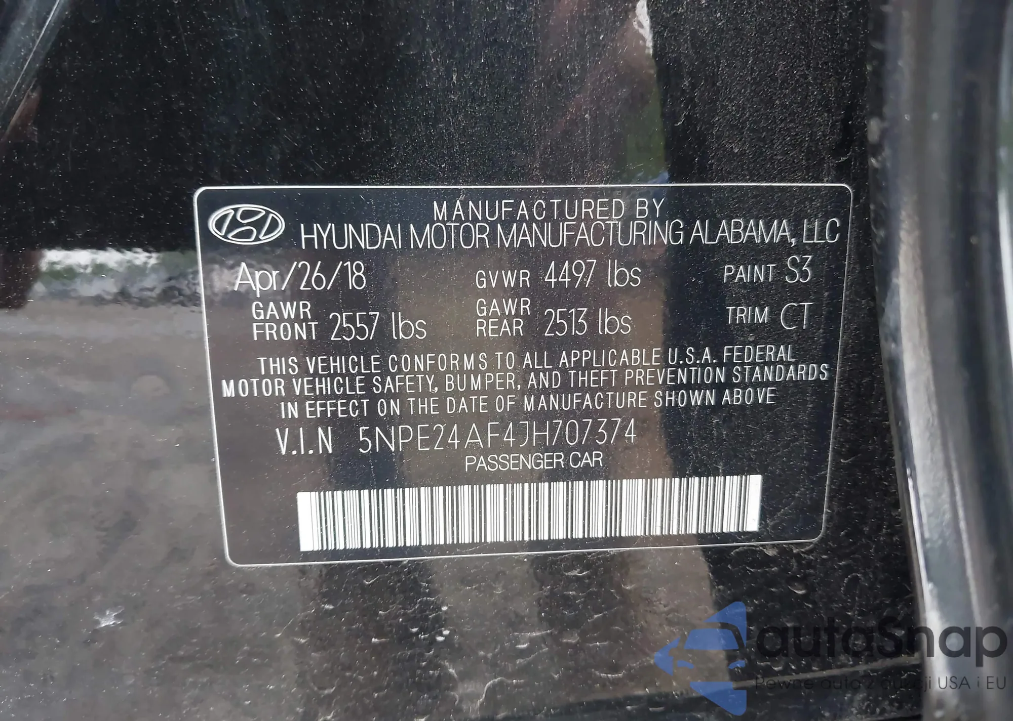 • VIN 5NPE24AF4JH707374
