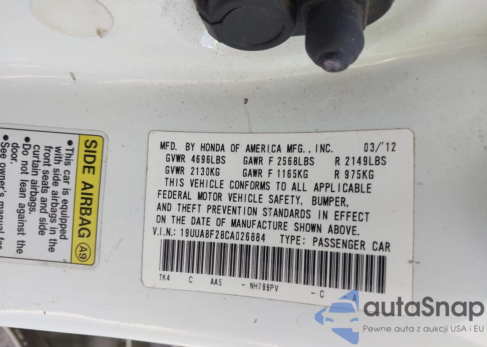 LOT: 42938190 VIN: 19UUA8F28CA026884