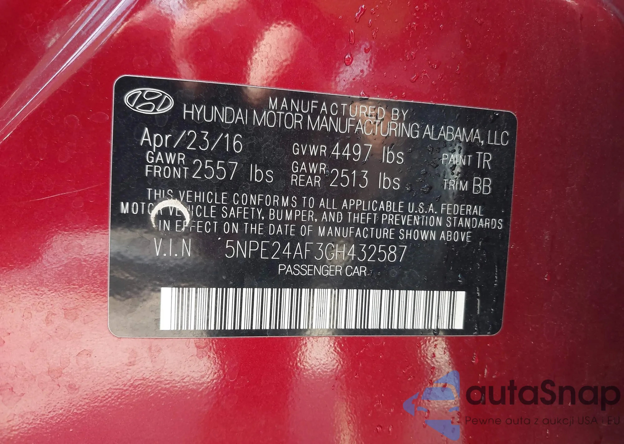 • VIN 5NPE24AF3GH432587