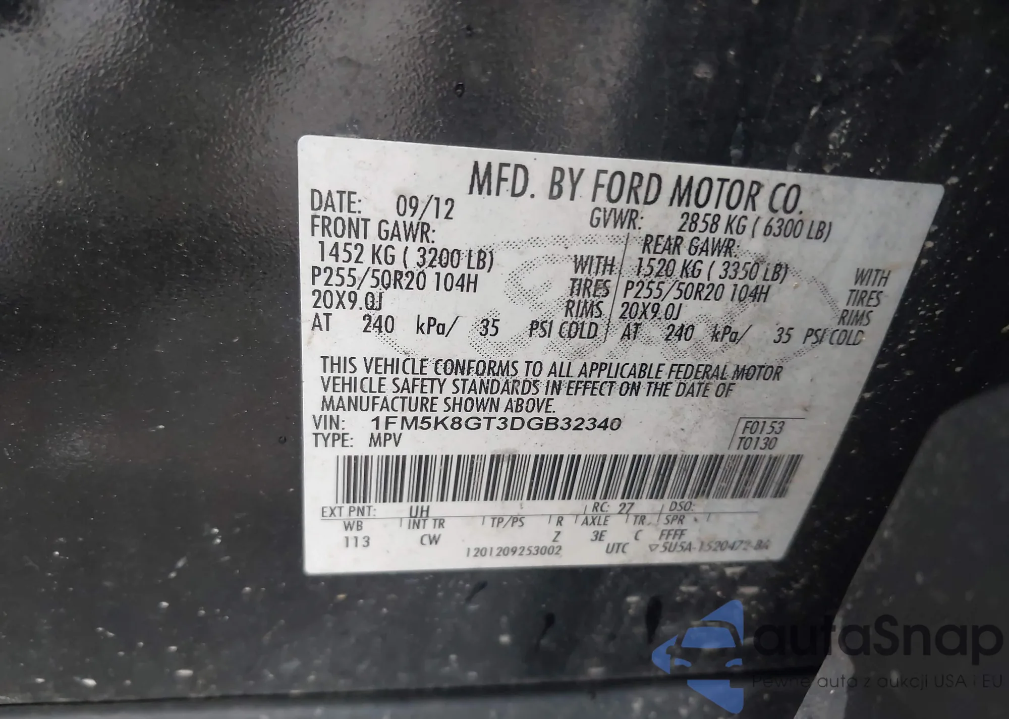LOT: 42892540 VIN: 5J6YH28696L025657
