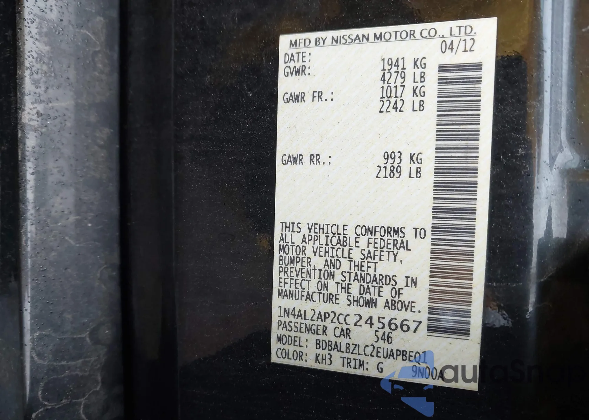 • VIN JN8AS58V99W447551