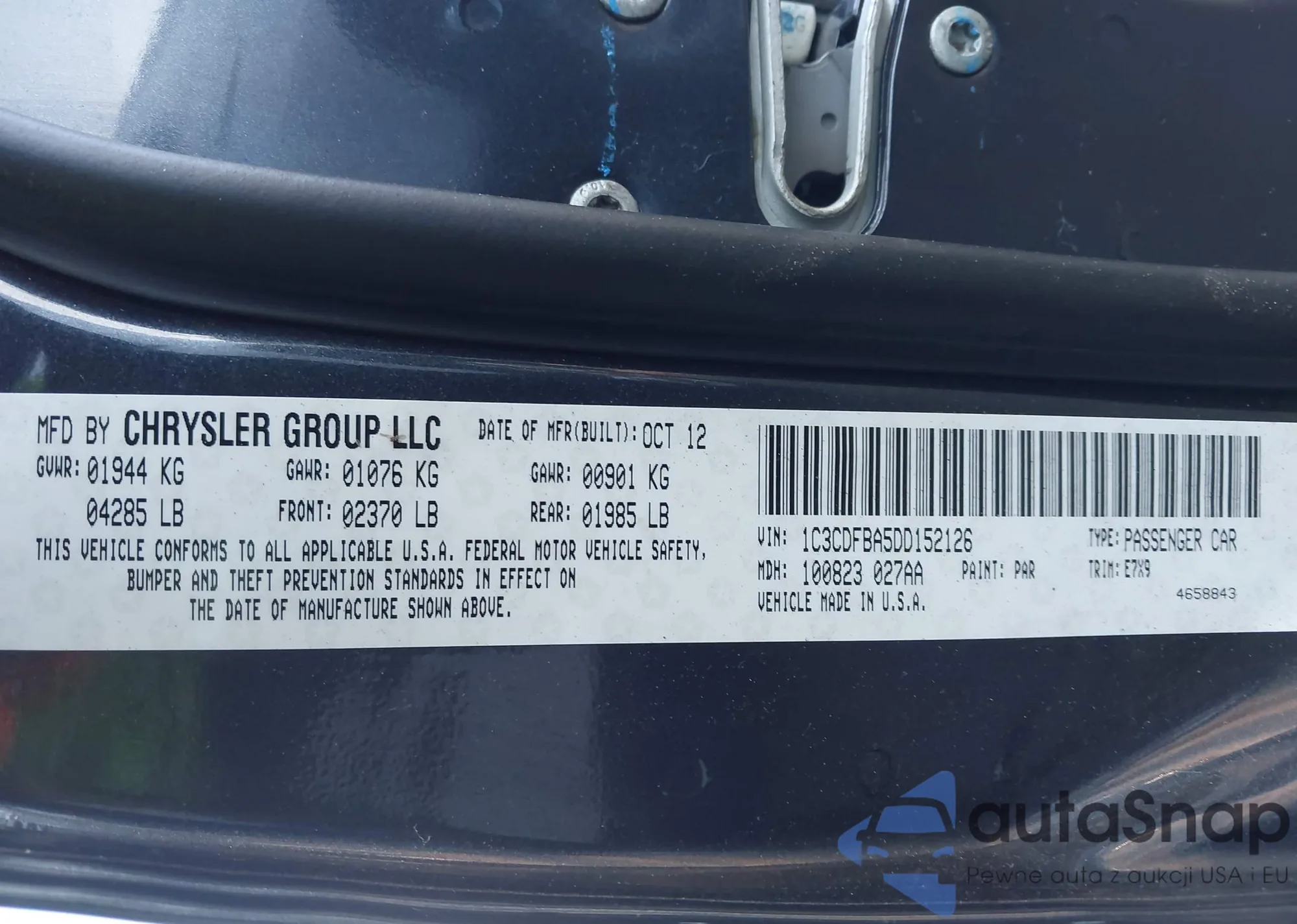 LOT: 42815583 VIN: 1C3CDFBA5DD152126