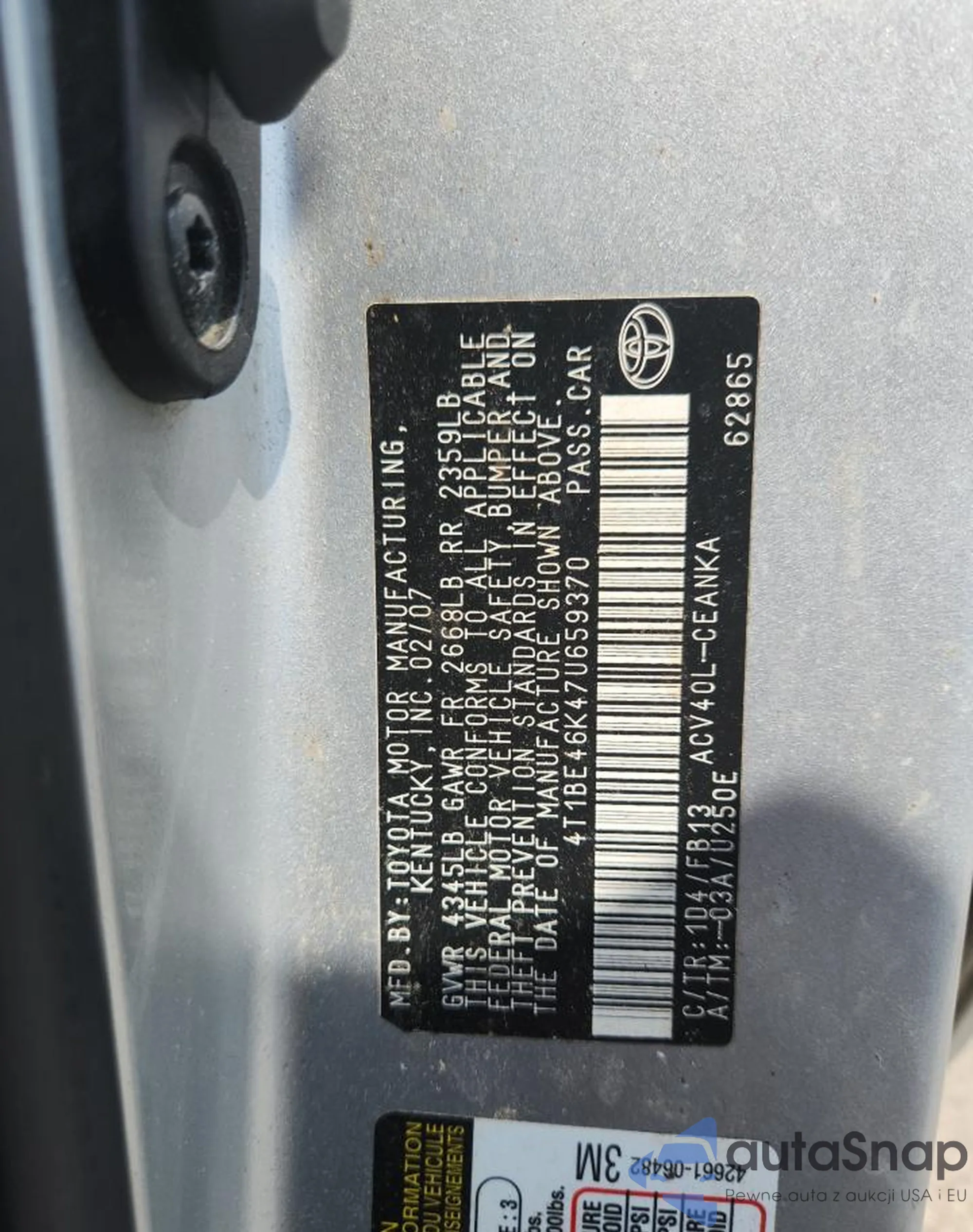LOT: 69349915 VIN: 4T1BE46K47U659370