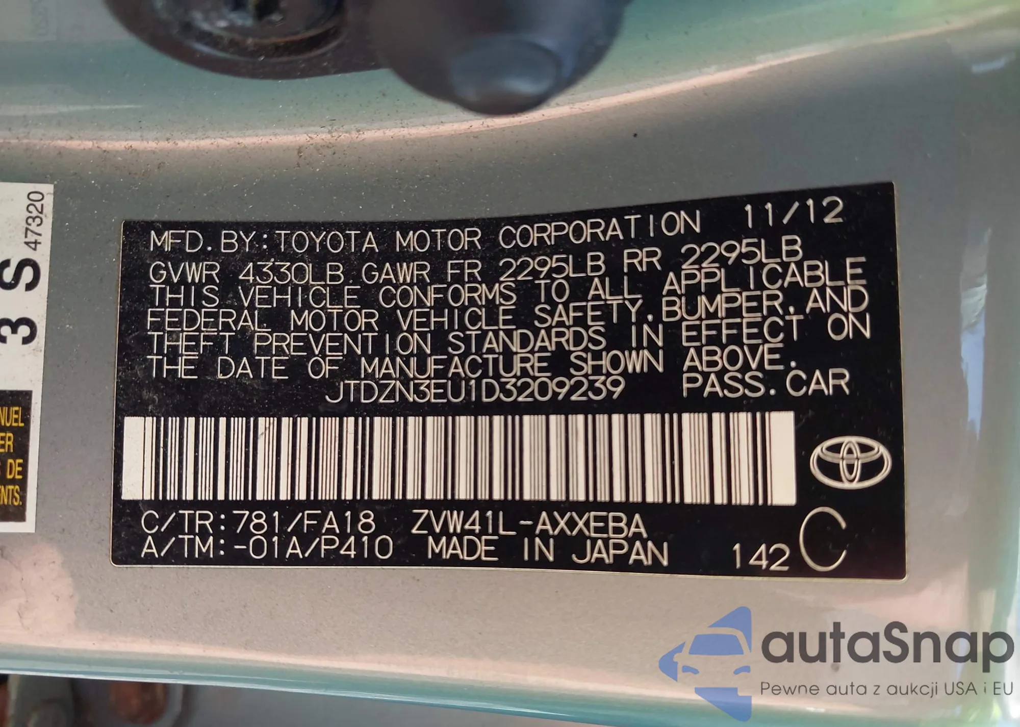 LOT: 43037336 VIN: 1FADP3K22DL104805