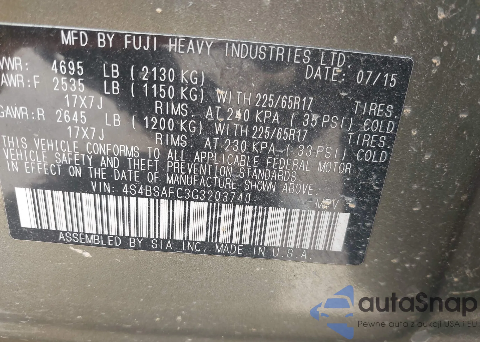 • VIN 4S4BSAFC3G3203740