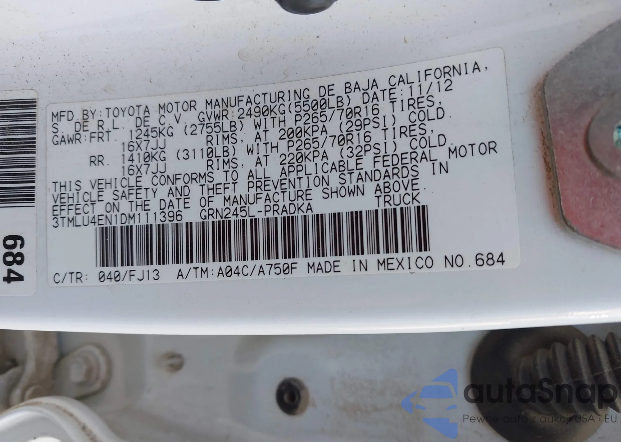 2013 Toyota Tacoma Double Cab from USA, damaged, VIN 3TMLU4EN1DM111396