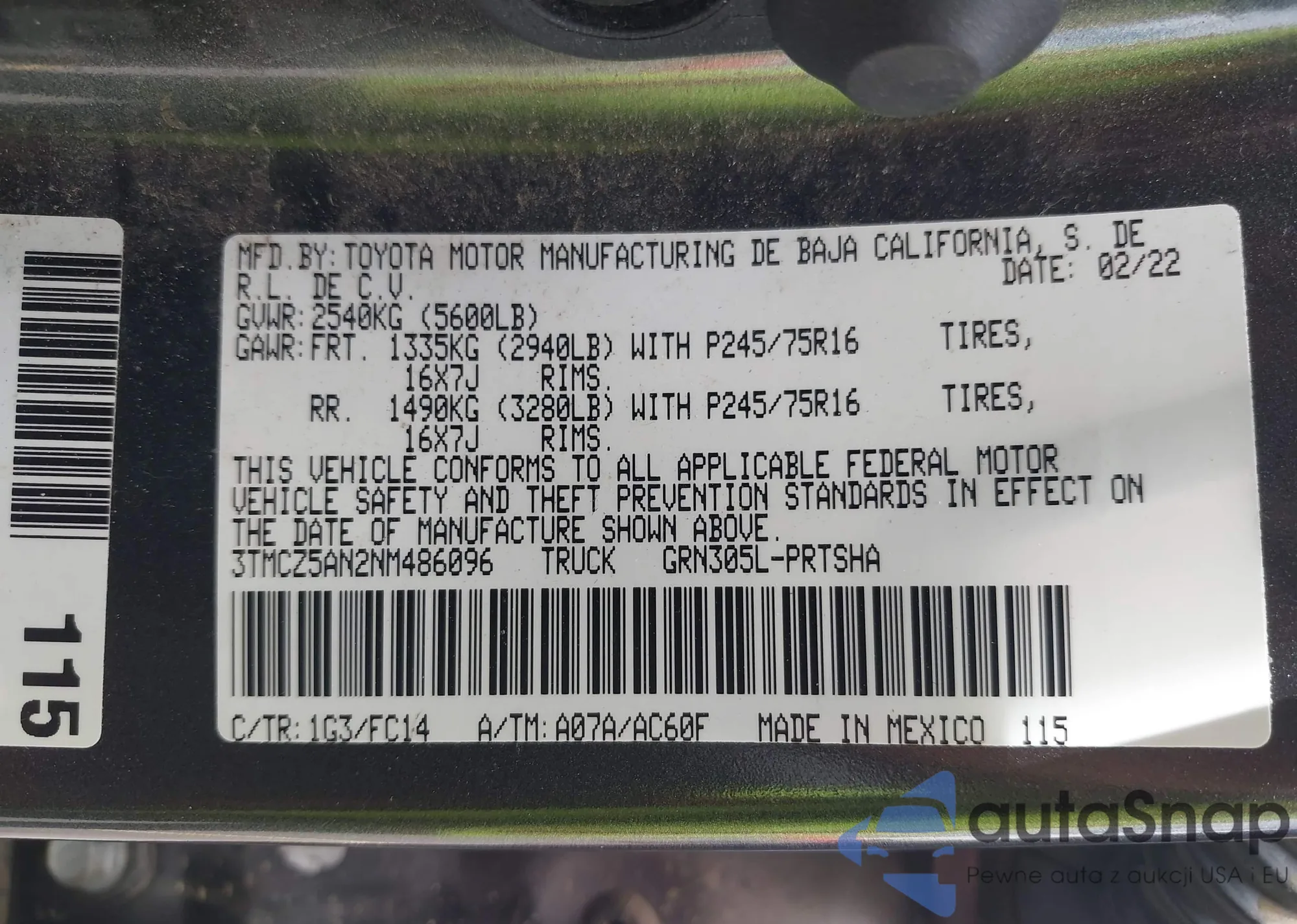 • VIN 7SAYGDEE8PF702804