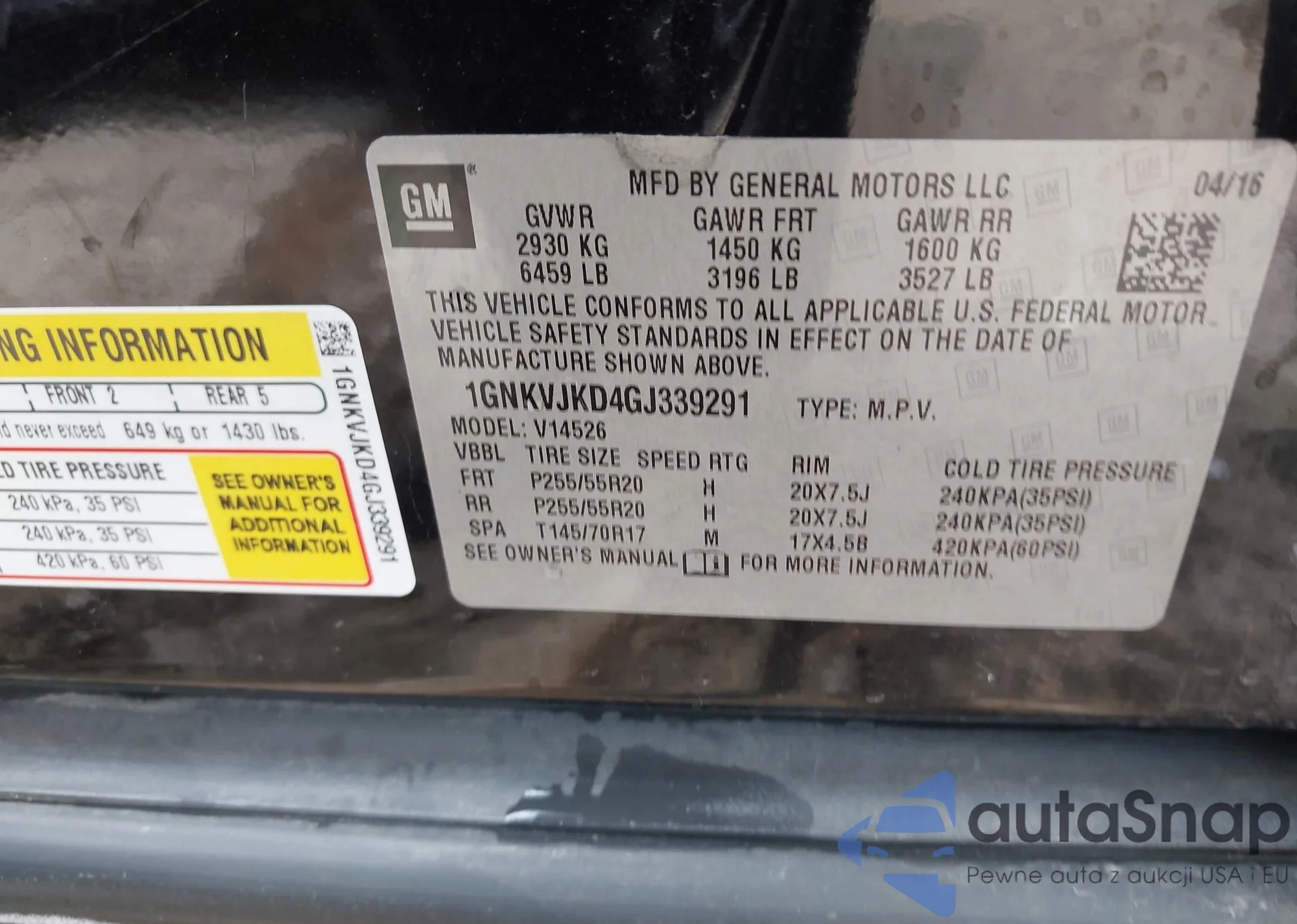 • VIN 1GNKVJKD4GJ339291