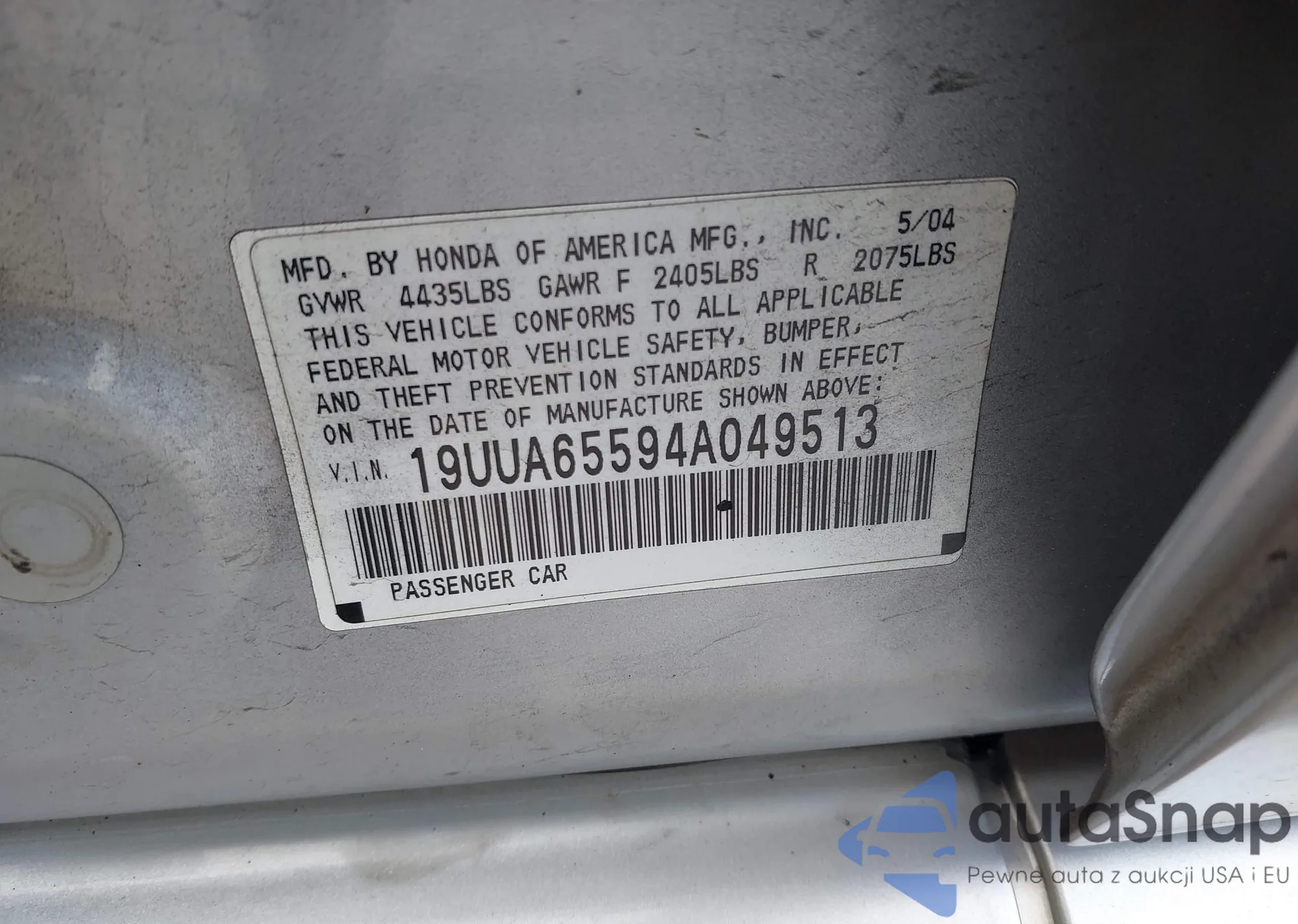 • VIN 19UUA65594A049513